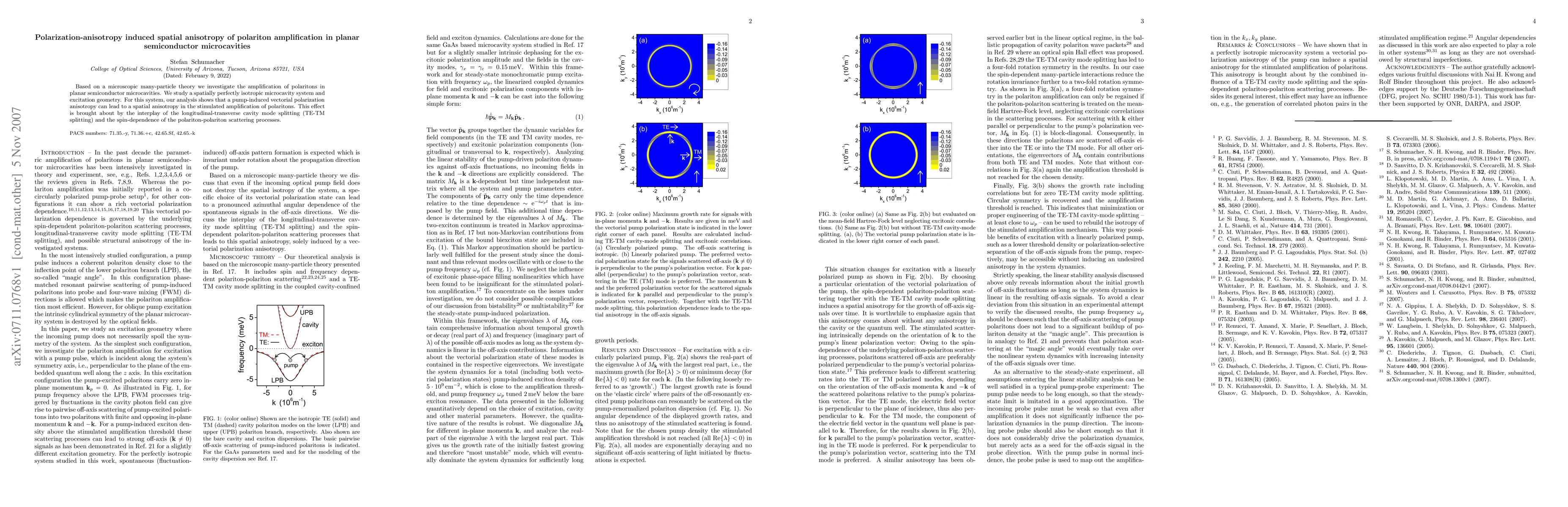 This research investigates how polarization-anisotropy in planar semiconductor microcavities can induce spatial anisotropy in polariton amplification, revealing that vectorial polarization anisotropy from pump excitation interacts with TE-TM splitting and spin-dependent scattering to create this effect.