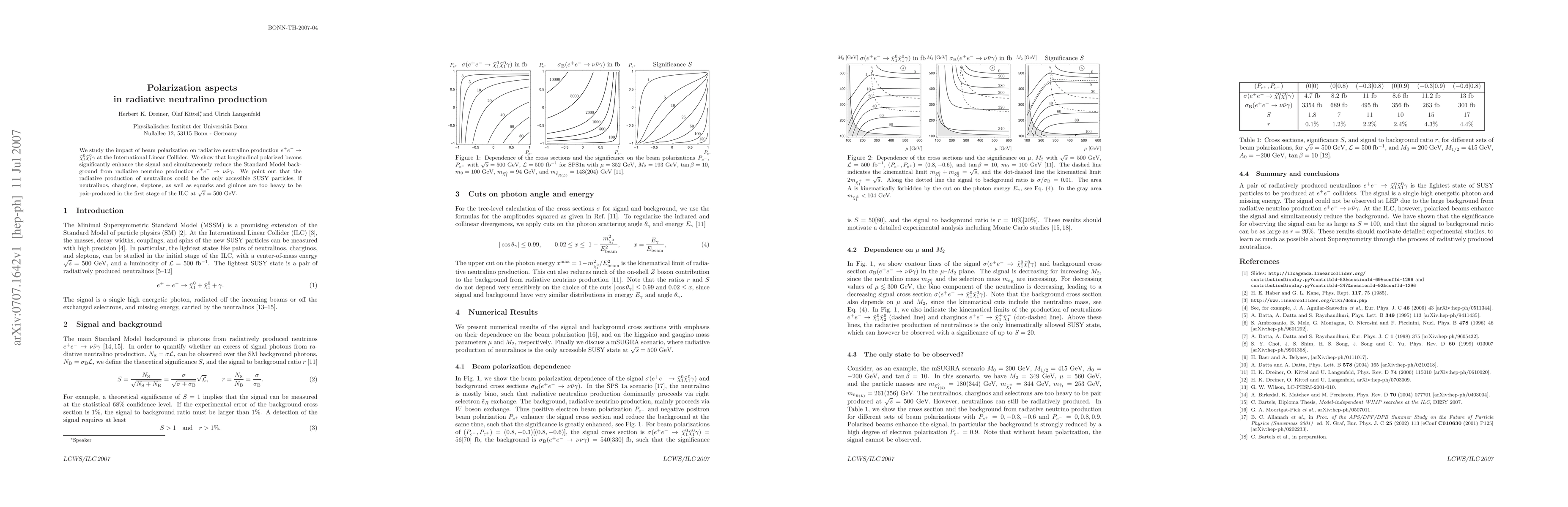 This paper investigates how beam polarization affects radiative neutralino production in e+e- collisions at the International Linear Collider, demonstrating that longitudinally polarized beams significantly enhance the neutralino signal while reducing Standard Model background. The study suggests that radiative neutralino production could be the primary method to access SUSY particles if other heavy particles are beyond the collider's initial energy reach.