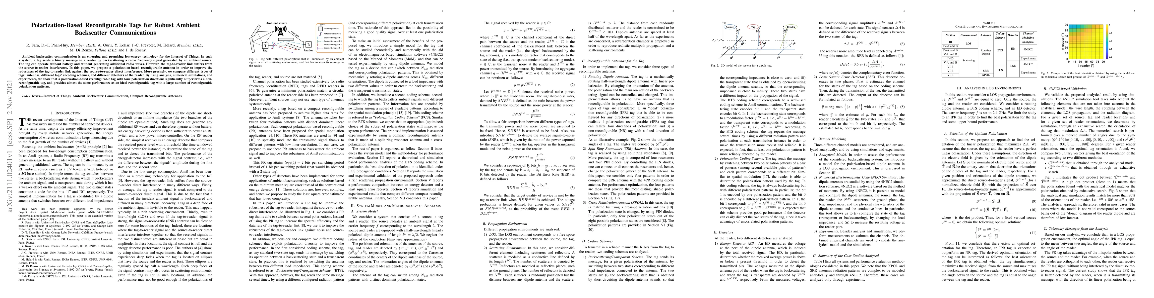 Ambient backscatter communication is an emerging and promising low-energy technology for the Internet of Things. In such a system, a tag sends a binary message to a reader by backscattering a radio frequency signal generated by an ambient source. The tag can operate without battery and without generating additional radio waves. However, the tag-to-reader link suffers from the source-to-reader interference. In this paper, we propose a polarization-based reconfigurable antenna in order to improve the robustness of the tag-to-reader link against the source-to-reader direct interference. More precisely, we compare different types of tags' antennas, different tags' encoding schemes, and different detectors at the reader. By using analysis, numerical simulations, and experiments, we show that a polarization-based reconfigurable tag with four polarization directions significantly outperforms a non-reconfigurable tag, and provides almost the same performance as an ideal reconfigurable tag with a large number of reconfigurable polarization patterns.