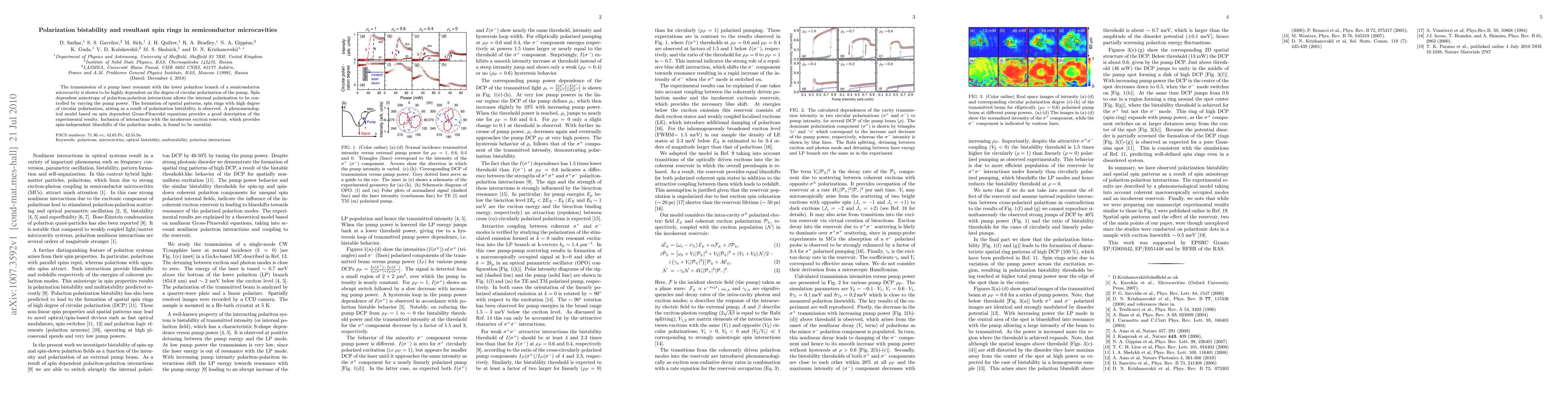 Development of a phenomenological model based on spin-dependent Gross-Pitaevskii equations to describe polarization bistability and spin ring formation in semiconductor microcavities.