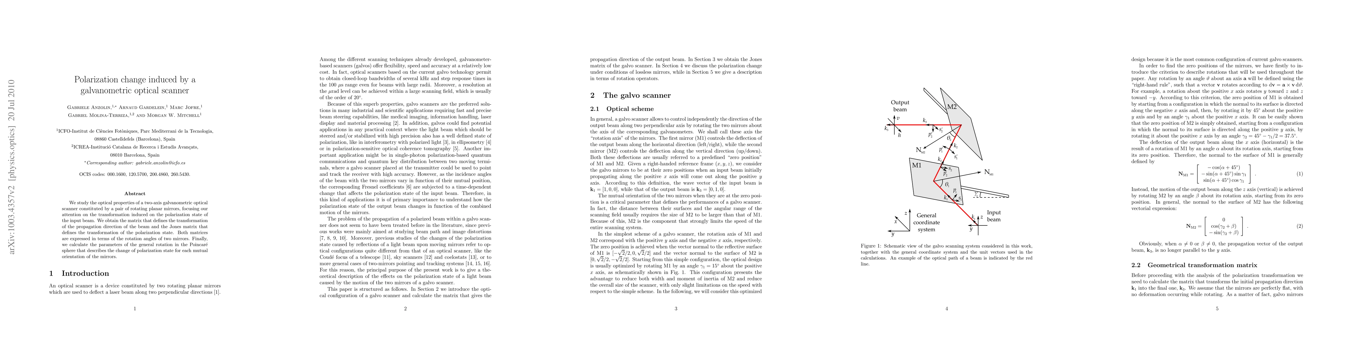 Researchers studied a galvanometric optical scanner, finding that it transforms both beam direction and polarization state in a predictable way based on mirror rotation angles.