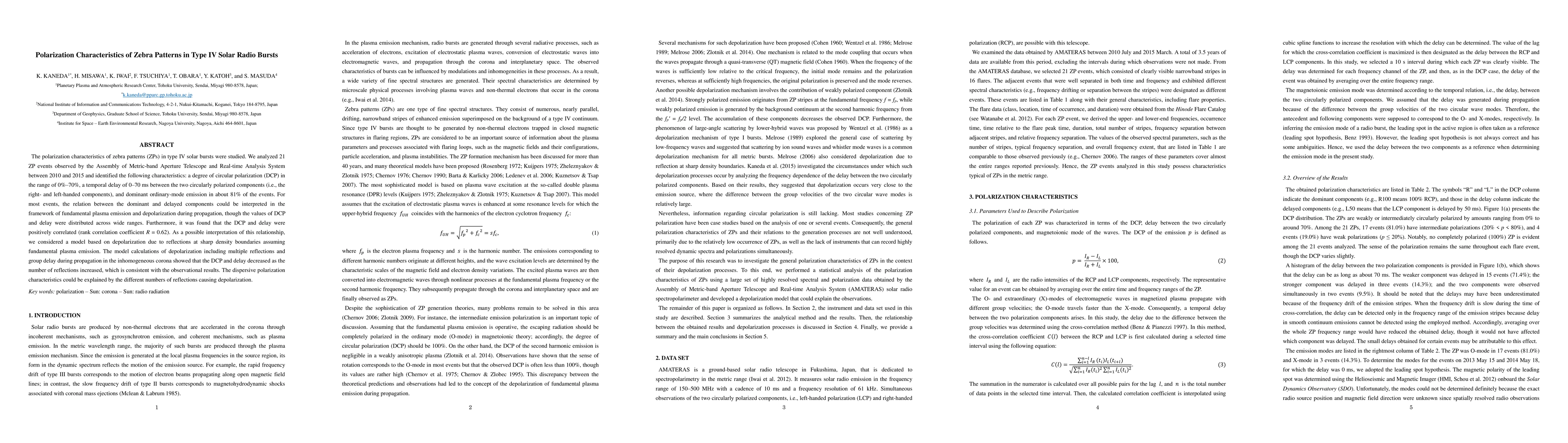 The study of zebra patterns in type IV solar bursts found that they exhibit circular polarization with a degree range of 0-70% and a temporal delay between components, which could be explained by depolarization due to reflections at sharp density boundaries.