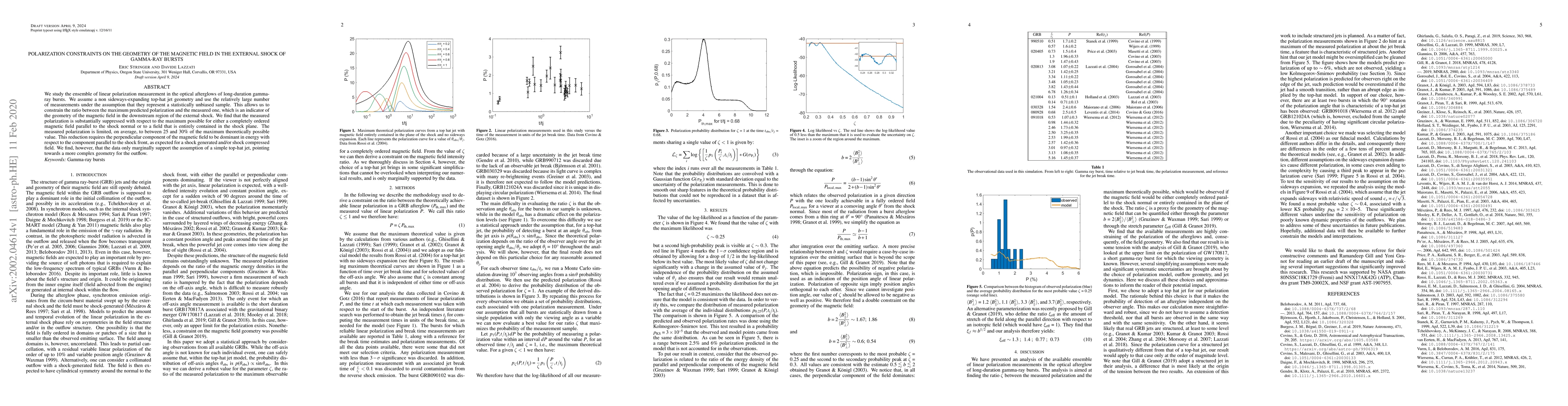 We study the ensemble of linear polarization measurement in the optical afterglows of long-duration gamma-ray bursts. We assume a non sideways-expanding top-hat jet geometry and use the relatively large number of measurements under the assumption that they represent a statistically unbiased sample. This allows us to constrain the ratio between the maximum predicted polarization and the measured one, which is an indicator of the geometry of the magnetic field in the downstream region of the external shock. We find that the measured polarization is substantially suppressed with respect to the maximum possible for either a completely ordered magnetic field parallel to the shock normal or to a field that is entirely contained in the shock plane. The measured polarization is limited, on average, to between 25 and 30% of the maximum theoretically possible value. This reduction requires the perpendicular component of the magnetic field to be dominant in energy with respect to the component parallel to the shock front, as expected for a shock generated and/or shock compressed field. We find, however, that the data only marginally support the assumption of a simple top-hat jet, pointing towards a more complex geometry for the outflow.