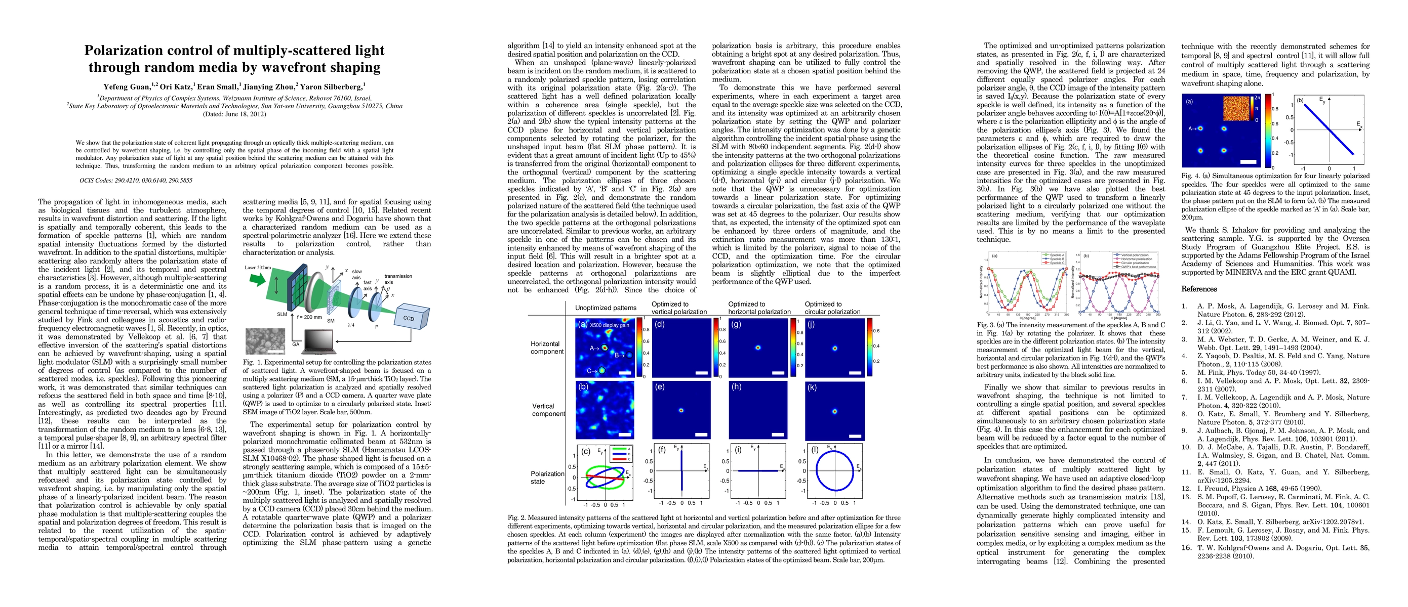 This paper demonstrates that wavefront shaping can control the polarization state of light passing through a multiple-scattering medium by manipulating the spatial phase of the incoming field. This technique enables the transformation of any polarization state at any position behind the scattering medium.