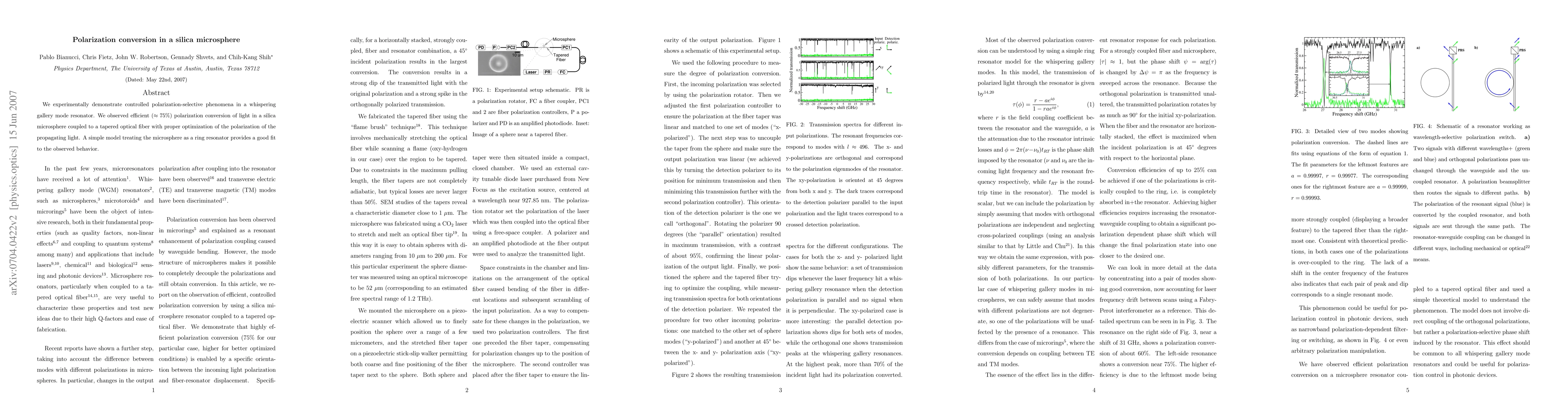 This research demonstrates efficient polarization conversion in a silica microsphere resonator, achieving approximately 75% conversion efficiency when coupled to a tapered optical fiber. A ring resonator model effectively explains the observed polarization-selective phenomena.