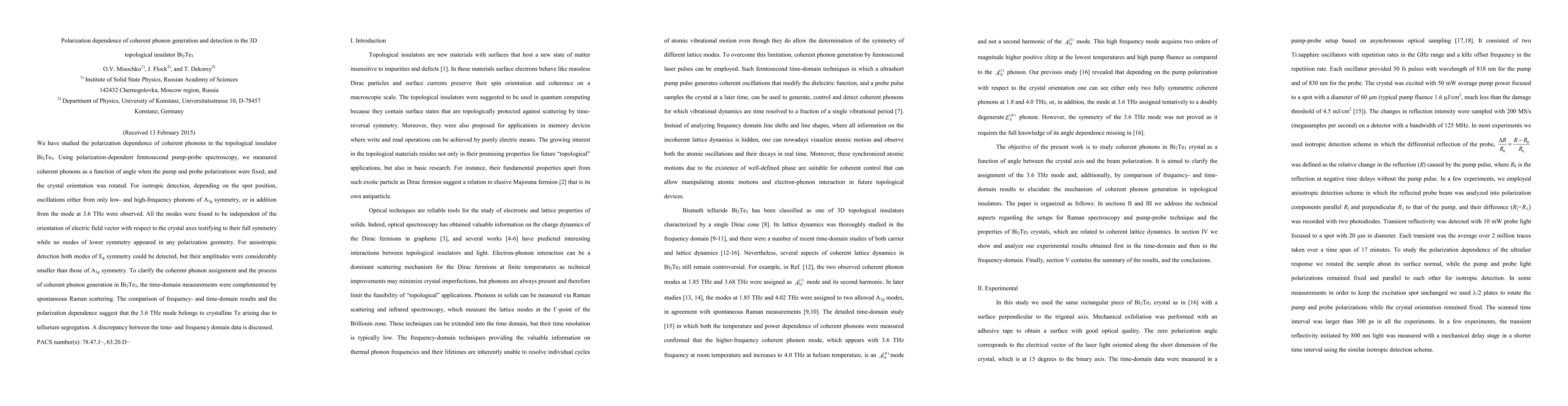 This study investigates the polarization dependence of coherent phonons in the 3D topological insulator Bi2Te3 using femtosecond pump-probe spectroscopy. The research reveals that all phonon modes exhibit full symmetry and no modes of lower symmetry appear, with the 3.6 THz mode attributed to crystalline Te.