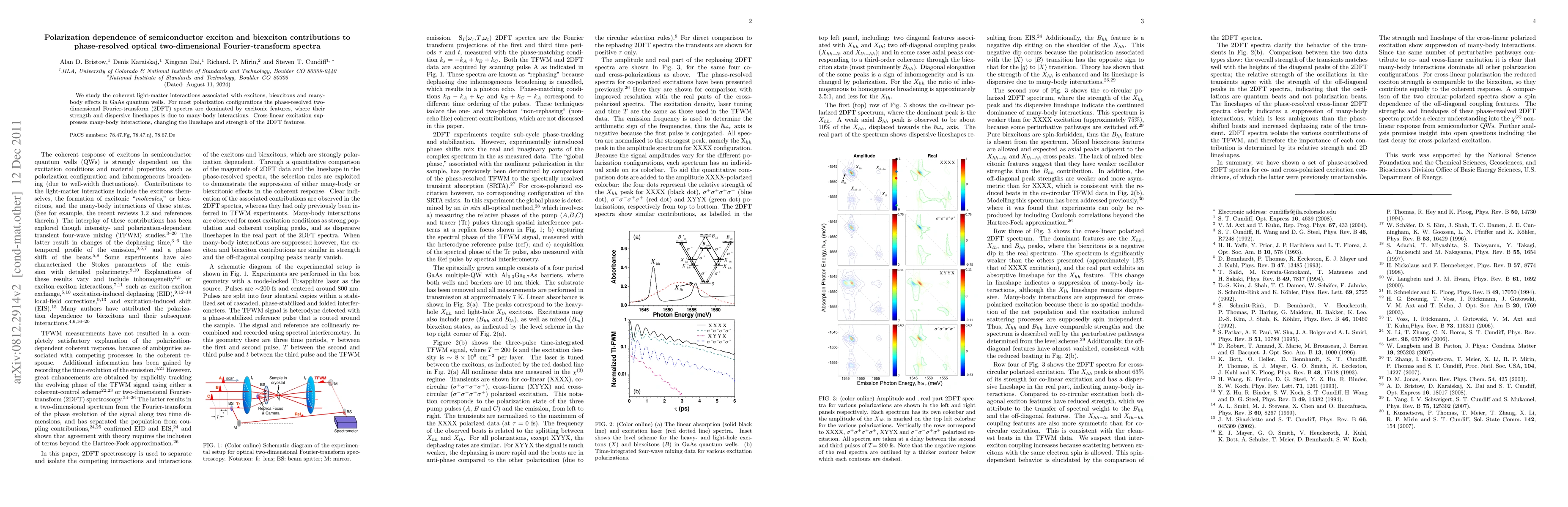 We study the coherent light-matter interactions of GaAs quantum wells associated with excitons, biexcitons and many-body effects. For most polarization configurations, excitonic features dominate the phase-resolved two-dimensional Fourier-transform (2DFT) spectra and have dispersive lineshapes, indicating the presence of many-body interactions. For cross-linear excitation, excitonic features become weak and absorptive due to the strong suppression of many-body effects; a result that can not be directly determined in transient four-wave mixing experiments. The biexcitonic features do not weaken for cross-polarized excitation and thus are more important.