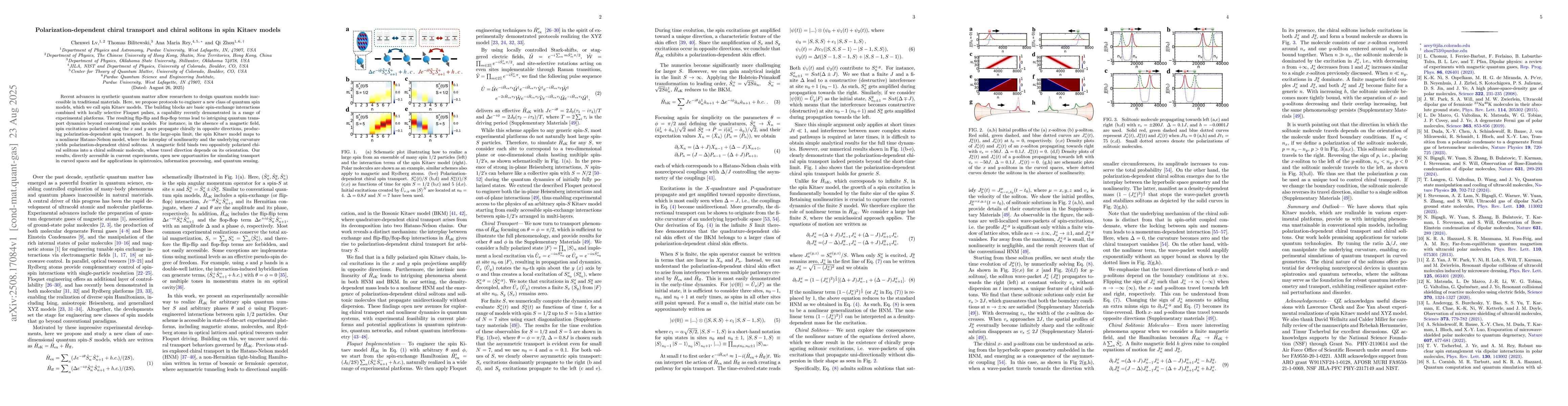 Recent advances in synthetic quantum matter allow researchers to design quantum models inaccessible in traditional materials. Here, we propose protocols to engineer a new class of quantum spin models, which we call spin Kitaev models. The building blocks are basic spin-exchange interactions combined with locally selective Floquet pulses, a capability recently demonstrated in a range of experimental platforms. The resulting flip-flip and flop-flop terms lead to intriguing quantum transport dynamics beyond conventional spin models. For instance, in the absence of a magnetic field, spin excitations polarized along the $x$ and $y$ axes propagate chirally in opposite directions, producing polarization-dependent spin transport. In the large-spin limit, the spin Kitaev model maps to a nonlinear Hatano-Nelson model, where the interplay of nonlinearity and the underlying curvature yields polarization-dependent chiral solitons. A magnetic field binds two oppositely polarized chiral solitons into a chiral solitonic molecule, whose travel direction depends on its orientation. Our results, directly accessible in current experiments, open new opportunities for simulating transport in curved spaces and for applications in spintronics, information processing, and quantum sensing.