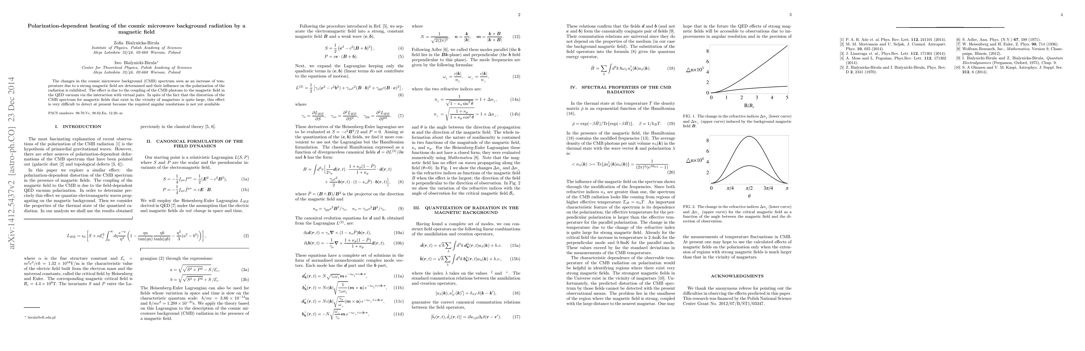 The changes in the cosmic microwave background (CMB) spectrum seen as an increase of temperature due to a strong magnetic field are determined and their influence on the polarization of the radiation is exhibited. The effect is due to the coupling of the CMB photons to the magnetic field in the QED vacuum via the interaction with virtual pairs. In spite of the fact that the distortion of the CMB spectrum for magnetic fields that exist in the vicinity of magnetars is quite large, this effect is very difficult to detect at present because the required angular resolutions is not yet available.