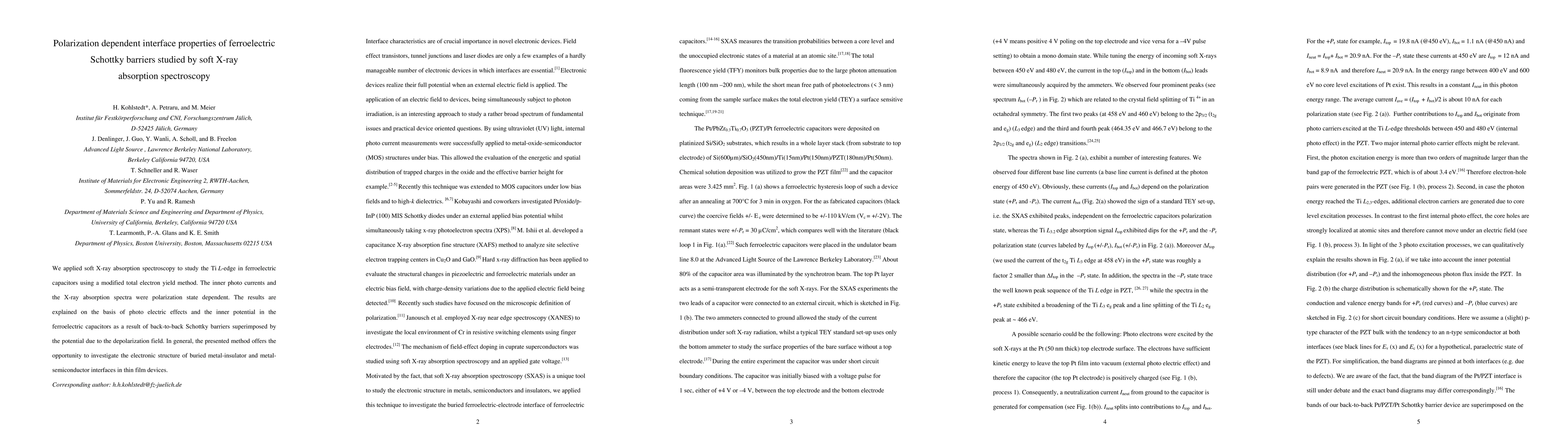 Researchers used soft X-ray absorption spectroscopy to study ferroelectric capacitors, finding that polarization-dependent interface properties exist due to Schottky barriers and depolarization fields, offering new insights into metal-insulator interfaces in thin film devices.