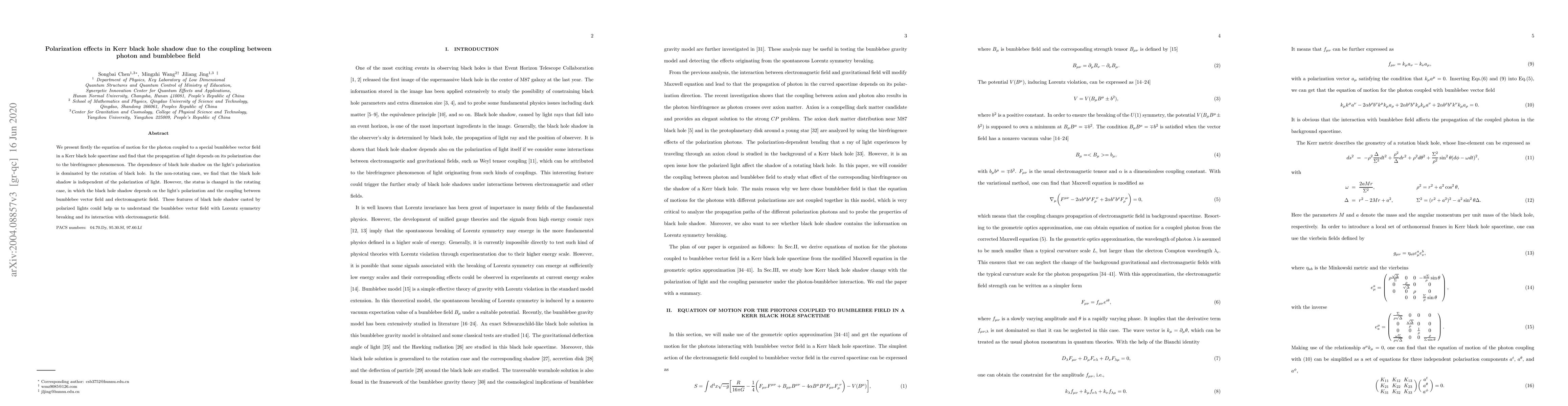 This paper investigates the polarization effects on the shadow of a Kerr black hole when photons are coupled with a bumblebee vector field, revealing that light's polarization influences the shadow due to birefringence, especially in rotating black holes. The non-rotating case shows polarization-independent shadows, contrasting with the rotating scenario where the shadow's shape varies with light polarization and the bumblebee field coupling.