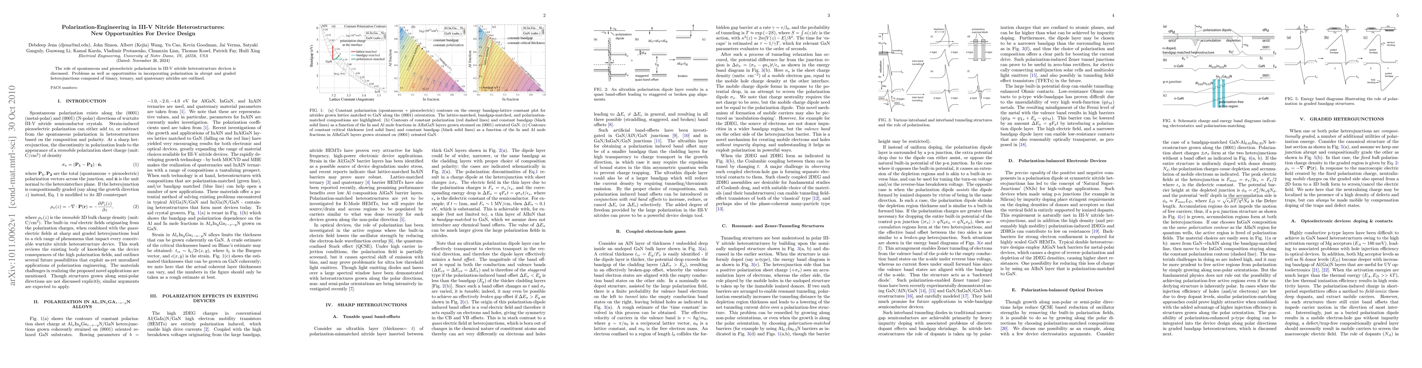 This paper explores the impact of spontaneous and piezoelectric polarization in III-V nitride heterostructures, highlighting both challenges and new design opportunities in devices utilizing abrupt and graded heterojunctions of various nitride compounds.