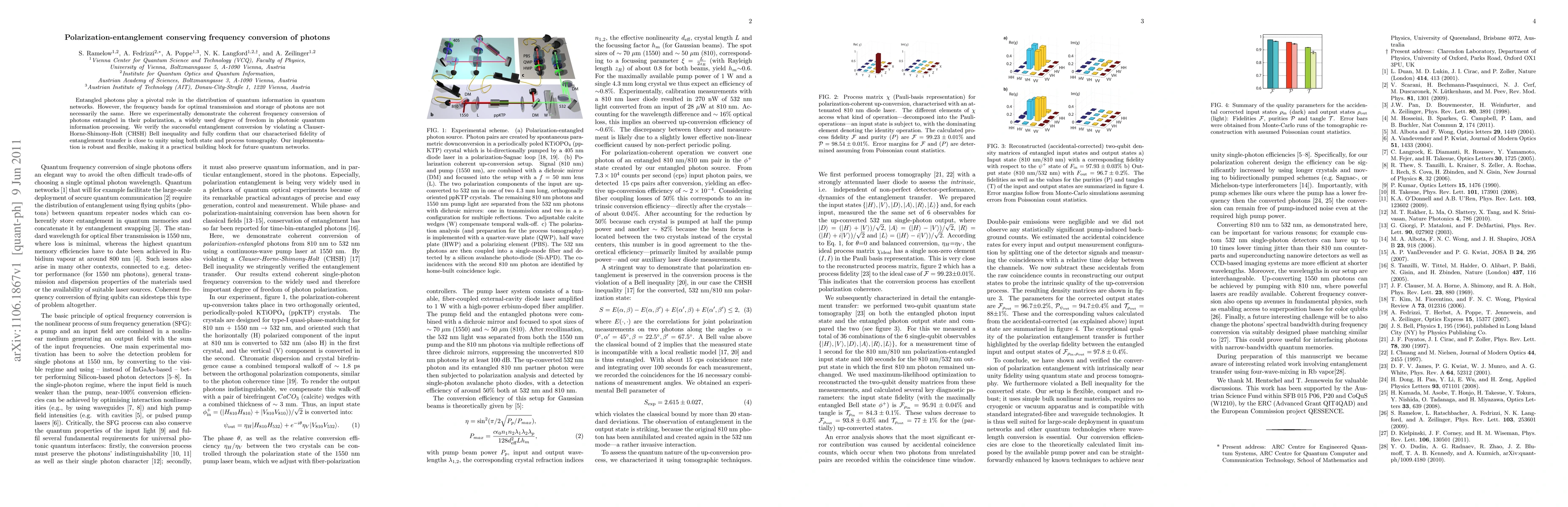 This paper demonstrates a method for coherent frequency conversion of polarization-entangled photons, ensuring fidelity preservation. The successful conversion is confirmed through Bell inequality violation and high fidelity measurements using state and process tomography, highlighting its potential for quantum network applications.