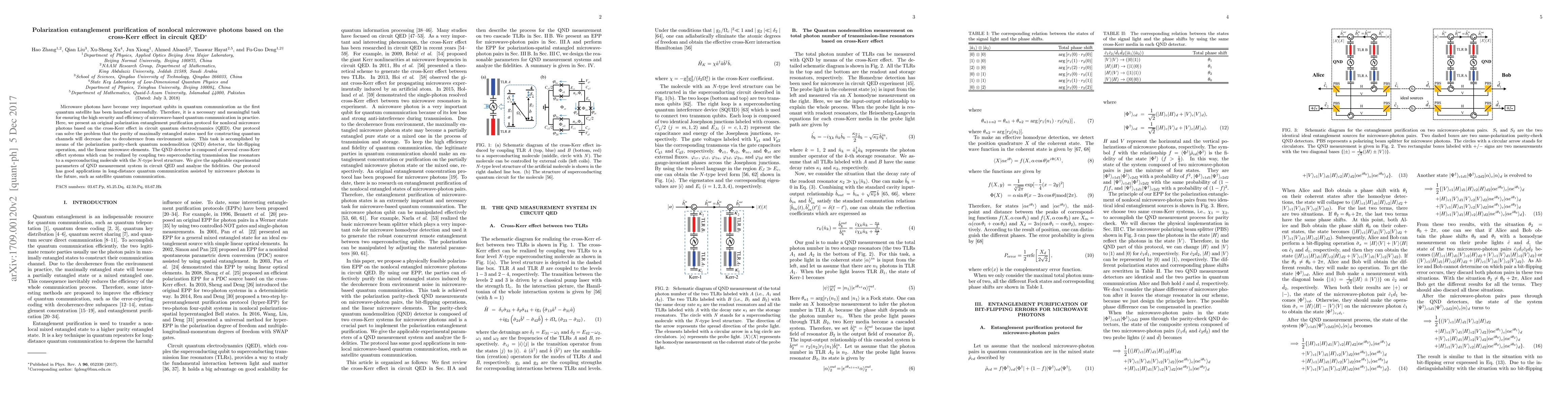 This paper presents a novel entanglement purification protocol for nonlocal microwave photons using the cross-Kerr effect in circuit quantum electrodynamics. The protocol employs a polarization parity-check quantum nondemolition detector to enhance the purity of entangled states, addressing decoherence issues for secure microwave-based quantum communication.
