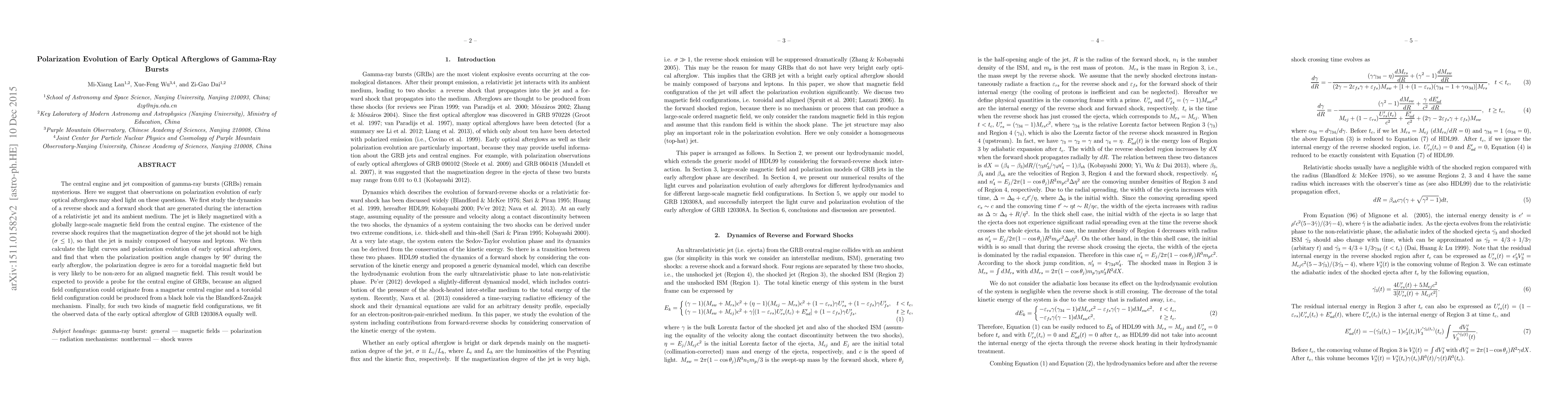 This paper explores how the polarization evolution of early optical afterglows of gamma-ray bursts (GRBs) can reveal insights into the central engine and jet composition. It finds that different magnetic field configurations—aligned or toroidal—can be inferred from the polarization degree and angle changes, potentially distinguishing between magnetar and black hole central engines.