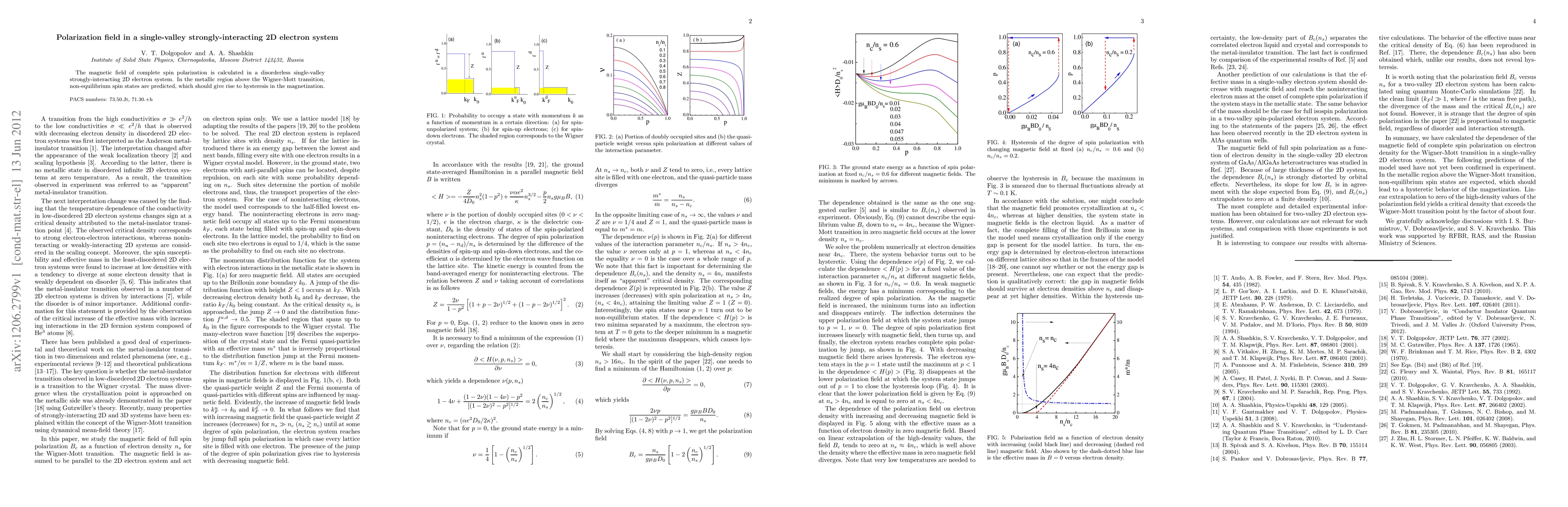 Summary: This paper calculates the magnetic field required for complete spin polarization in a disorderless, strongly-interacting 2D electron system above the Wigner-Mott transition, predicting non-equilibrium spin states and hysteresis in magnetization.