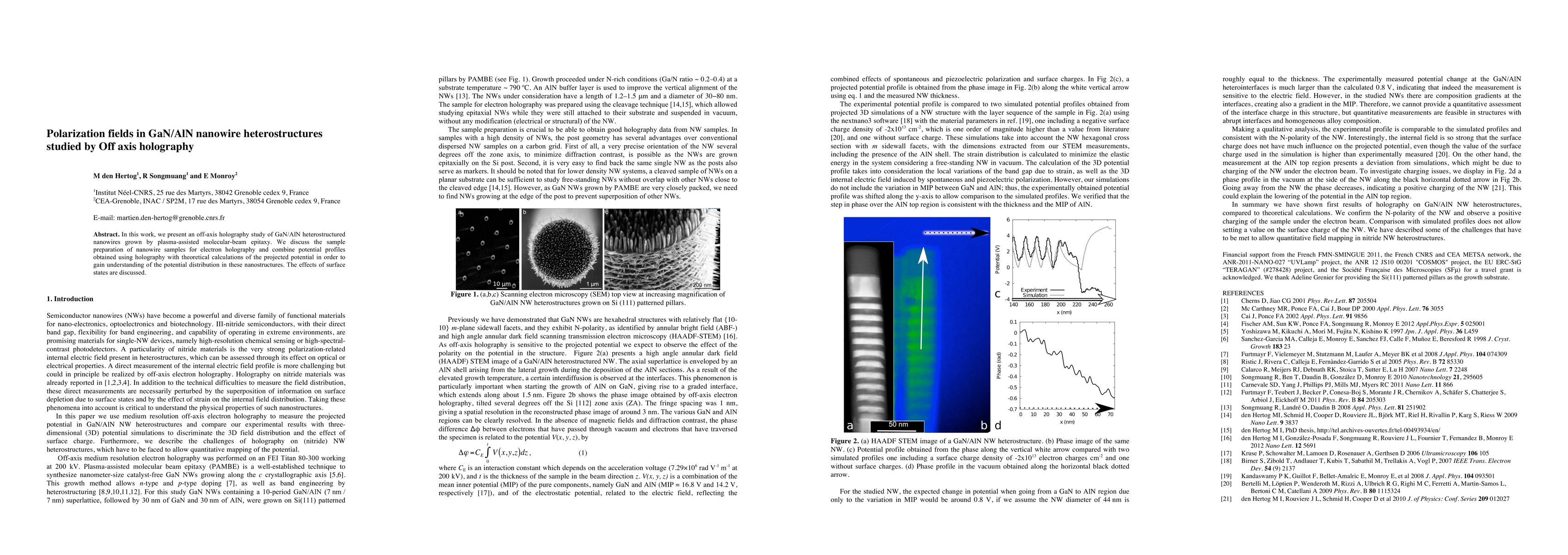 This research uses off-axis holography to study the polarization fields in GaN/AlN nanowire heterostructures. Combining experimental results with theoretical calculations, it reveals insights into the potential distribution within these nanostructures, discussing the impact of surface states.