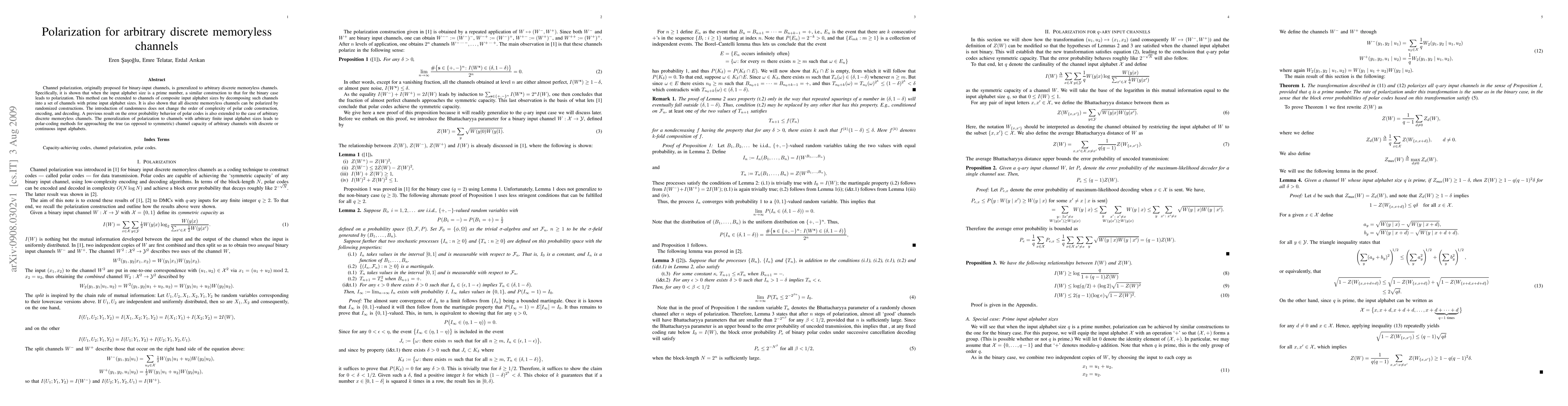 This paper generalizes channel polarization to arbitrary discrete memoryless channels, showing that prime input alphabet sizes can be polarized similarly to binary channels. It extends this method to composite sizes by decomposing them into prime-sized channels and demonstrates that all such channels can be polarized using randomized constructions without increasing complexity.