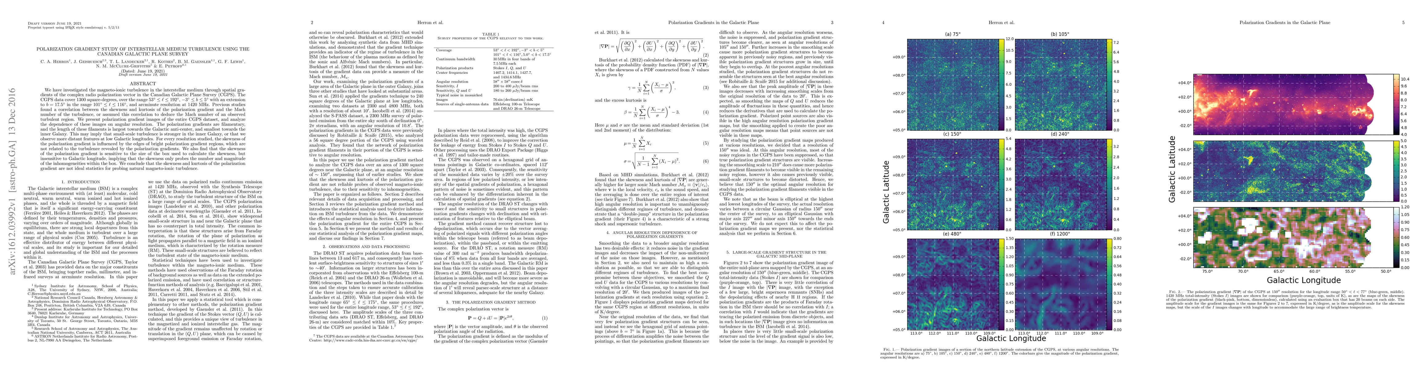 We have investigated the magneto-ionic turbulence in the interstellar medium through spatial gradients of the complex radio polarization vector in the Canadian Galactic Plane Survey (CGPS). The CGPS data cover 1300 square-degrees, over the range ${53^{\circ}}\leq{\ell}\leq{192^{\circ}}$, ${-3^{\circ}}\leq{b}\leq{5^{\circ}}$ with an extension to ${b}={17.5^{\circ}}$ in the range ${101^{\circ}}\leq{\ell}\leq{116^{\circ}}$, and arcminute resolution at 1420 MHz. Previous studies found a correlation between the skewness and kurtosis of the polarization gradient and the Mach number of the turbulence, or assumed this correlation to deduce the Mach number of an observed turbulent region. We present polarization gradient images of the entire CGPS dataset, and analyze the dependence of these images on angular resolution. The polarization gradients are filamentary, and the length of these filaments is largest towards the Galactic anti-center, and smallest towards the inner Galaxy. This may imply that small-scale turbulence is stronger in the inner Galaxy, or that we observe more distant features at low Galactic longitudes. For every resolution studied, the skewness of the polarization gradient is influenced by the edges of bright polarization gradient regions, which are not related to the turbulence revealed by the polarization gradients. We also find that the skewness of the polarization gradient is sensitive to the size of the box used to calculate the skewness, but insensitive to Galactic longitude, implying that the skewness only probes the number and magnitude of the inhomogeneities within the box. We conclude that the skewness and kurtosis of the polarization gradient are not ideal statistics for probing natural magneto-ionic turbulence.