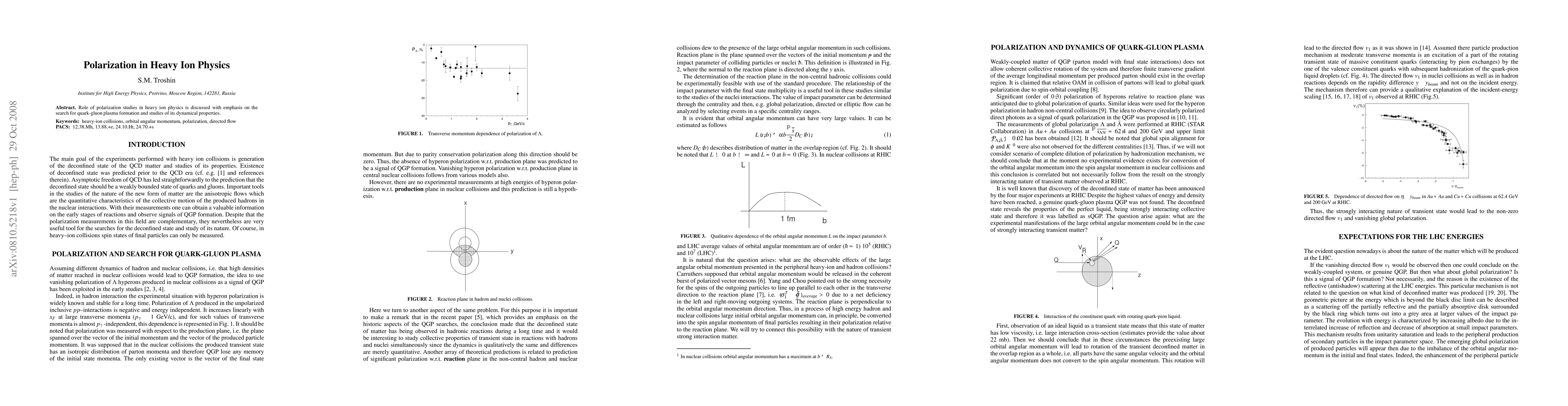 The paper discusses the significance of polarization studies in heavy ion physics, focusing on their role in identifying quark-gluon plasma and understanding its behavior. It emphasizes these investigations for unraveling fundamental aspects of nuclear matter under extreme conditions.