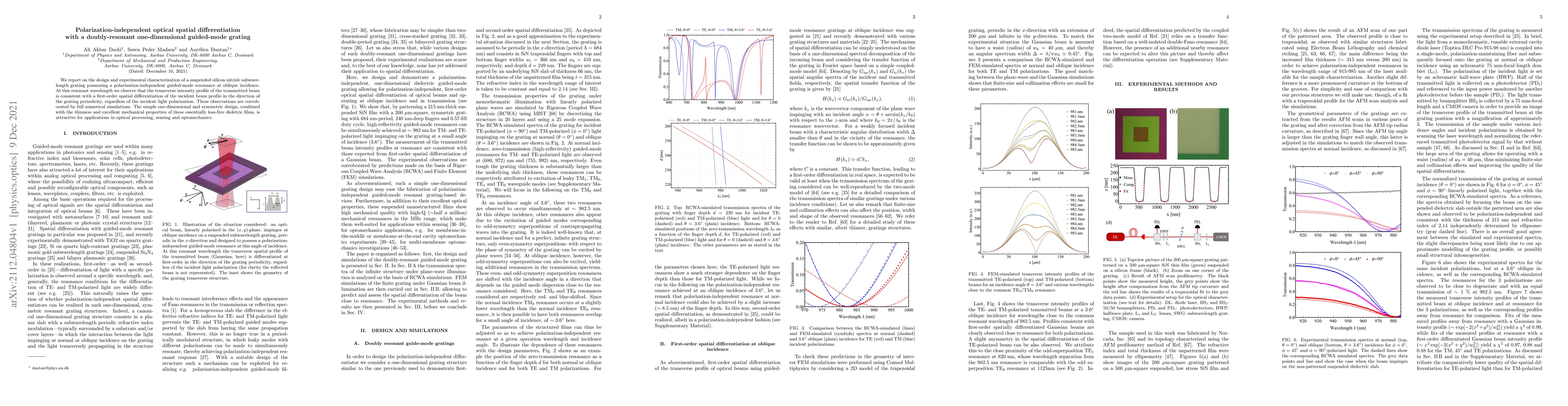 This paper details a suspended silicon nitride grating that achieves polarization-independent optical spatial differentiation through a guided-mode resonance. The design allows for first-order spatial differentiation of incident light regardless of polarization, validated by both experimental and numerical simulations.