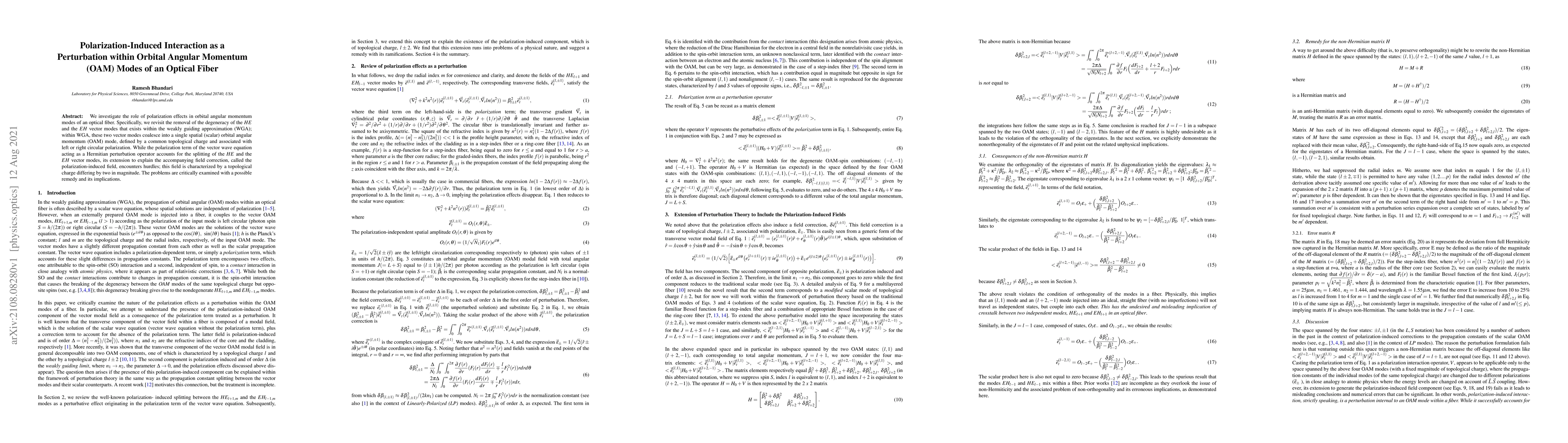 This paper explores how polarization affects orbital angular momentum modes in optical fibers, focusing on the removal of degeneracy between $HE$ and $EH$ vector modes under the weakly guiding approximation. It identifies challenges in explaining the polarization-induced field correction, which has a topological charge differing by two, and discusses potential solutions and their implications.