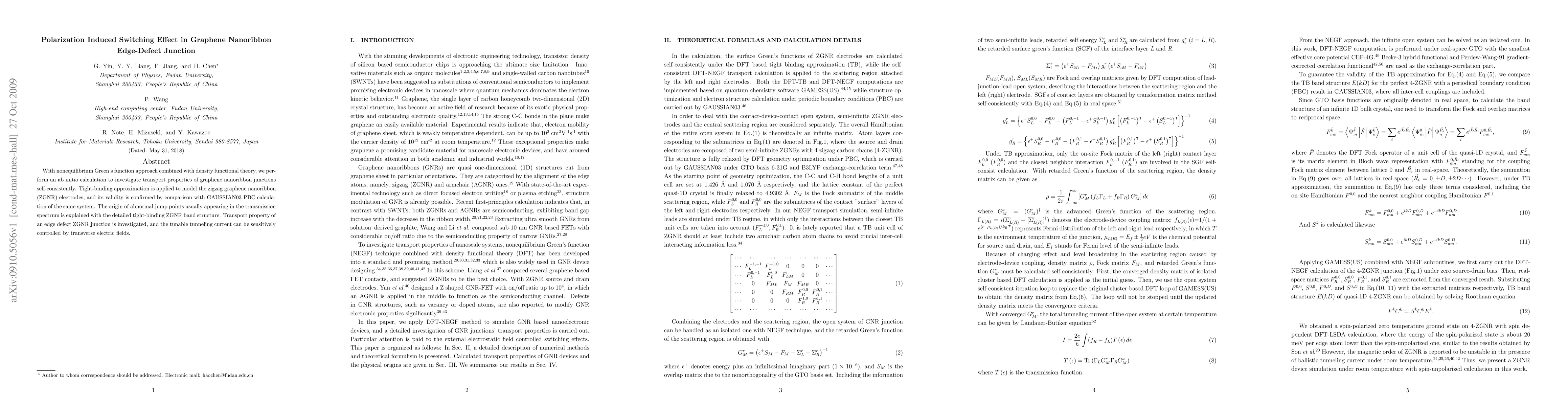 This study employs nonequilibrium Green's function and density functional theory to investigate the transport properties of zigzag graphene nanoribbon edge-defect junctions, demonstrating that transverse electric fields can significantly modulate tunneling current through polarization-induced switching effects.
