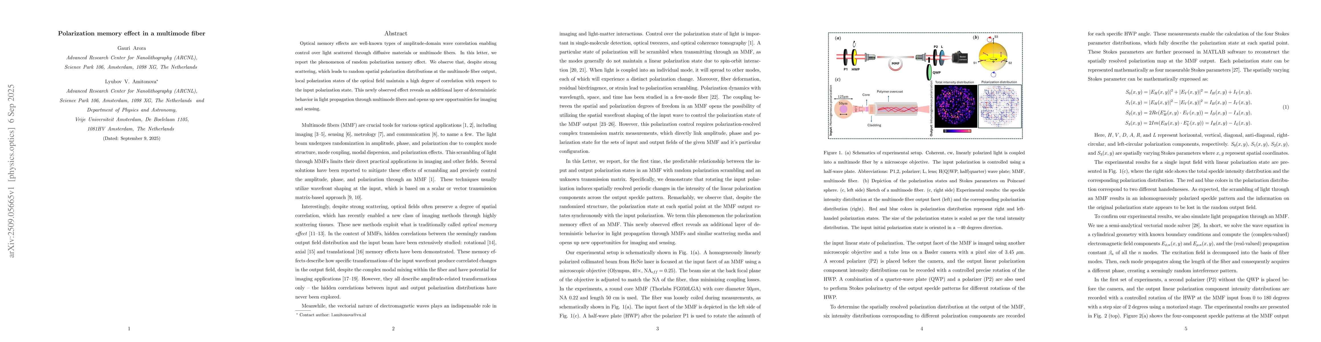 Optical memory effects are well-known types of amplitude-domain wave correlation enabling control over light scattered through diffusive materials or multimode fibers. In this letter, we report the phenomenon of random polarization memory effect. We observe that, despite strong scattering, which leads to random spatial polarization distributions at the multimode fiber output, local polarization states of the optical field maintain a high degree of correlation with respect to the input polarization state. This newly observed effect reveals an additional layer of deterministic behavior in light propagation through multimode fibers and opens up new opportunities for imaging and sensing.