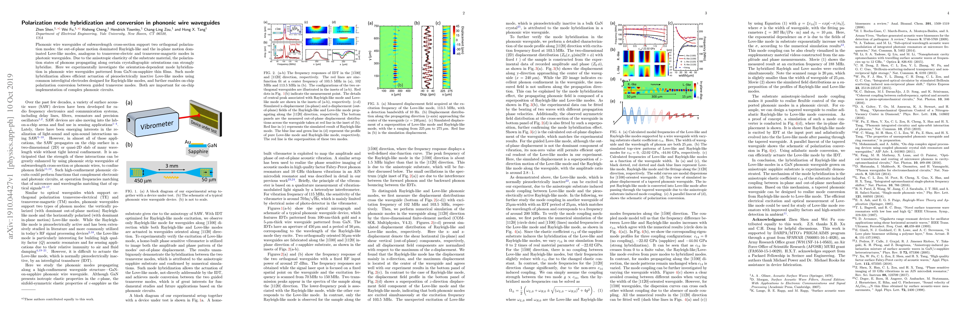 Phononic wire waveguides of subwavelength cross-section support two orthogonal polarization modes: the out-of-plane motion dominated Rayleigh-like and the in-plane motion dominated Love-like modes, analogous to transverse-electric and transverse-magnetic modes in photonic waveguides. Due to the anisotropic elasticity of the substrate material, the polarization states of phonons propagating along certain crystallographic orientations can strongly hybridize. Here we experimentally investigate the orientation-dependent mode hybridization in phononic wire waveguides patterned from GaN-on-sapphire thin films. Such mode hybridization allows efficient actuation of piezoelectrically inactive Love-like modes using common interdigital electrodes designed for Rayleigh-like modes, and further enables on-chip polarization conversion between guided transverse modes. Both are important for on-chip implementation of complex phononic circuits.