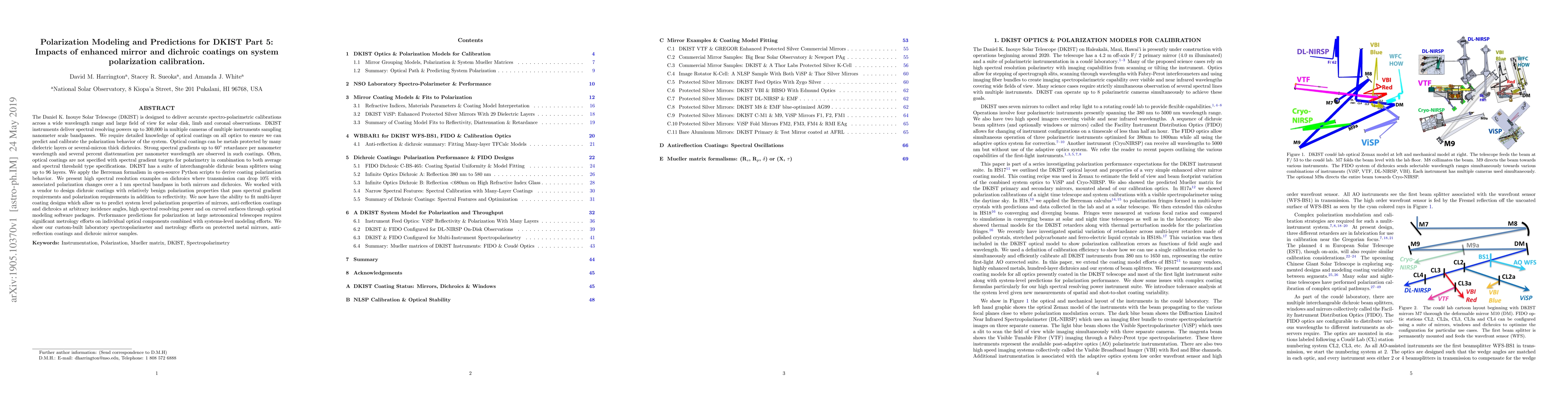 The DKIST is designed to deliver accurate spectropolarimetric calibrations across a wide wavelength range and large field of view for solar observations. Instruments deliver spectral resolving powers up to 300,000 in multiple cameras of several instrument. We require detailed knowledge of optical coatings on all optics to ensure we can predict and calibrate the polarization behavior of the system. Optical coatings can be metals protected by many dielectric layers or several-micron thick dichroics. Strong spectral gradients up to 60deg retardance per nanometer wavelength and several percent diattenuation per nanometer wavelength are observed in such coatings. Often, optical coatings are not specified with spectral gradient targets for polarimetry in combination to both average and spectral threshold type specifications. DKIST has a suite of interchangeable dichroic beam splitters using up to 96 layers. We apply the Berreman formalism in open-source Python scripts to derive coating polarization behavior. We present high spectral resolution examples on dichroics where transmission can drop 10% with associated polarization changes over a 1 nm spectral bandpass in both mirrors and dichroics. We design dichroic coatings that pass polarization spectral gradient requirements in addition to reflectivity. We now can fit multi-layer coating designs to predict system level polarization properties of mirrors, anti-reflection coatings and dichroics at arbitrary incidence angles, high spectral resolving power on curved surfaces through optical modeling software packages. Polarization predictions for large astronomical telescopes require significant metrology efforts on individual optical components combined with systems-level modeling efforts. We show our custom-built laboratory spectropolarimeter and metrology efforts on protected metal mirrors, anti-reflection coatings and dichroic mirror samples.