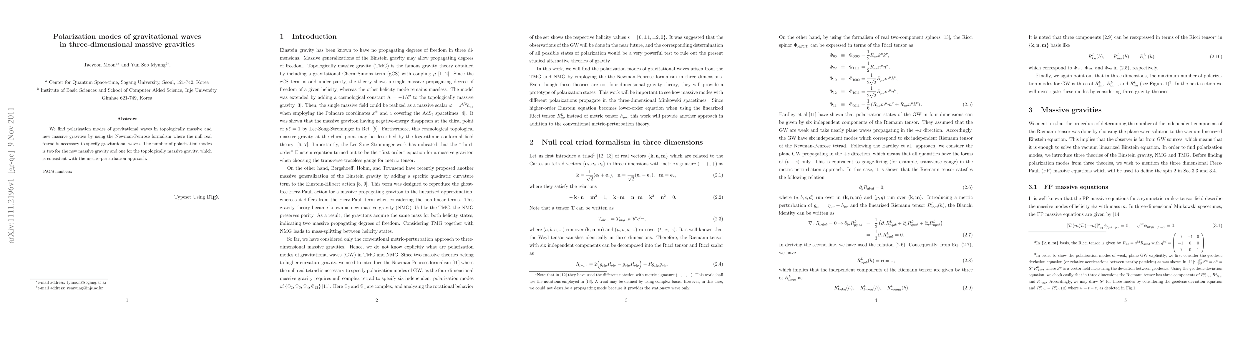 This paper explores the polarization modes of gravitational waves in topologically massive and new massive gravities using the Newman-Penrose formalism. It finds two polarization modes for new massive gravity and one for topologically massive gravity, aligning with results from the metric-perturbation approach.