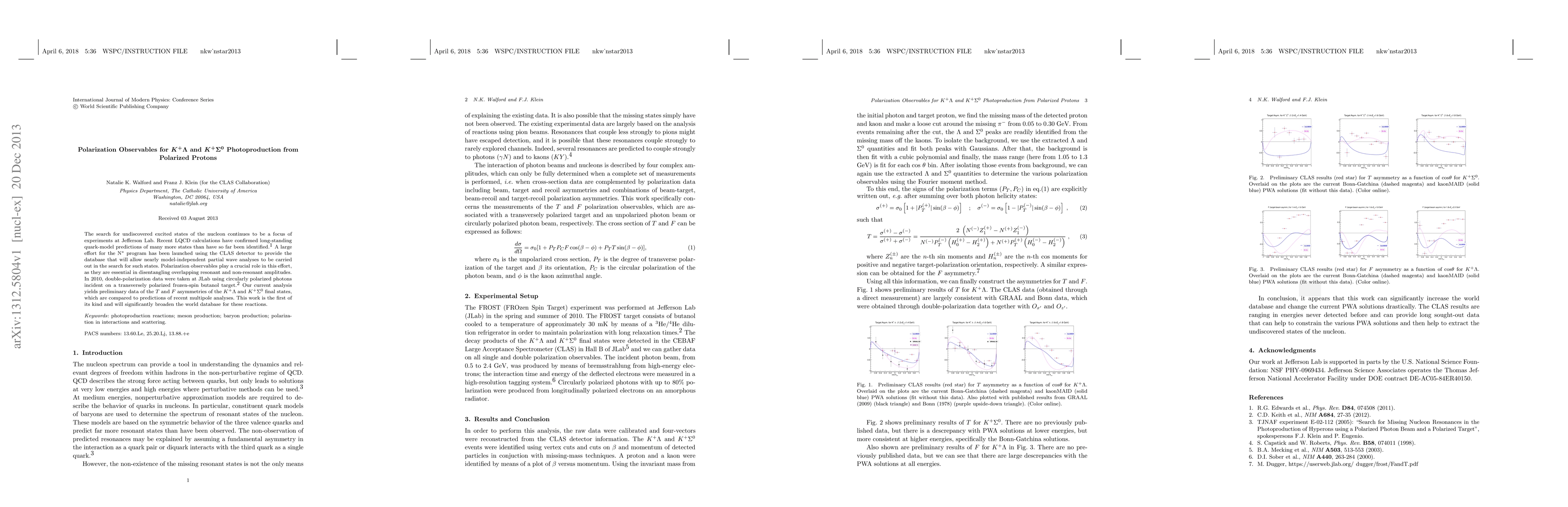 The search for undiscovered excited states of the nucleon continues to be a focus of experiments at Jefferson Lab.Recent LQCD calculations have confirmed long-standing quark-model predictions of many more states than have so far been identified.A large effort for the N-star program has been launched using the CLAS detector to provide the database that will allow nearly model-independent partial wave analyses to be carried out in the search for such states. Polarization observables play a crucial role in this effort, as they are essential in disentangling overlapping resonant and non-resonant amplitudes. In 2010, double-polarization data were taken at JLab using circularly polarized photons incident on a transversely polarized frozen-spin butanol target. Our current analysis yields preliminary data of the T and F asymmetries for kaon photoproduction final states, which are compared to predictions of recent multipole analyses. This work is the first of its kind and will significantly broaden the world database for these reactions.