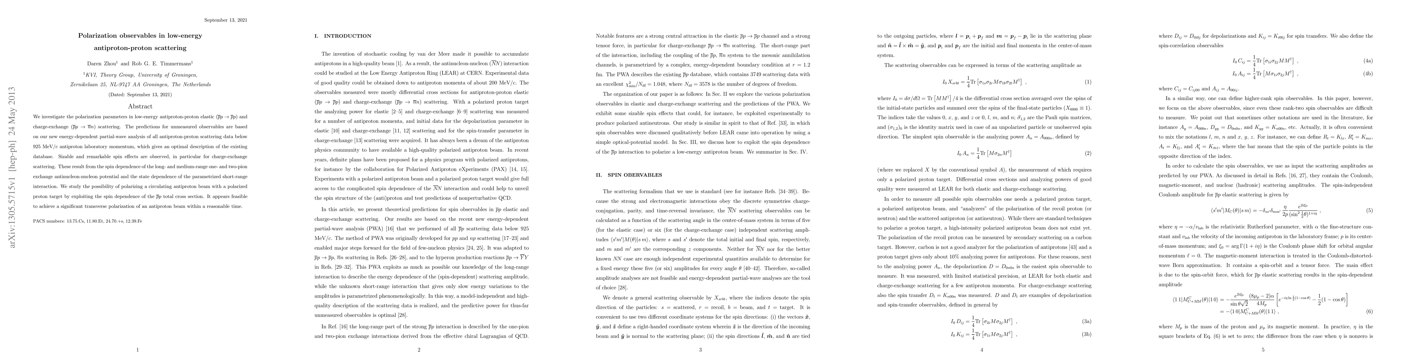 This paper investigates polarization observables in low-energy antiproton-proton scattering, revealing significant spin effects, particularly in charge-exchange processes. The study employs an energy-dependent partial-wave analysis to predict unmeasured observables, suggesting a feasible method to polarize antiproton beams using a polarized proton target.