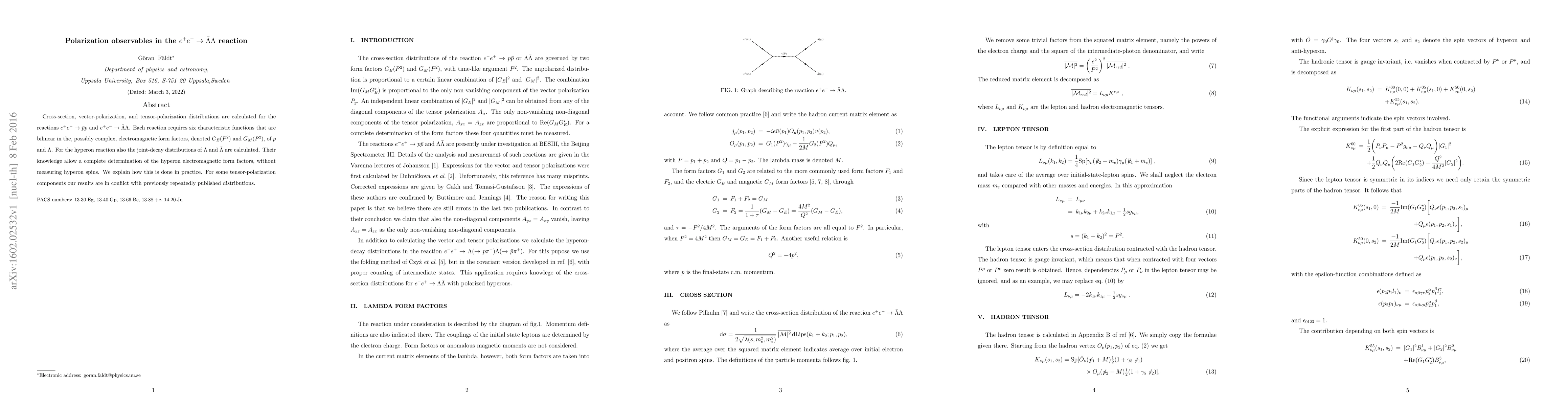 The paper presents detailed calculations and expressions for polarization observables in $e^+ e^- \rightarrow \bar{\Lambda} \Lambda$ reactions, offering a novel approach to extract hyperon form factors.