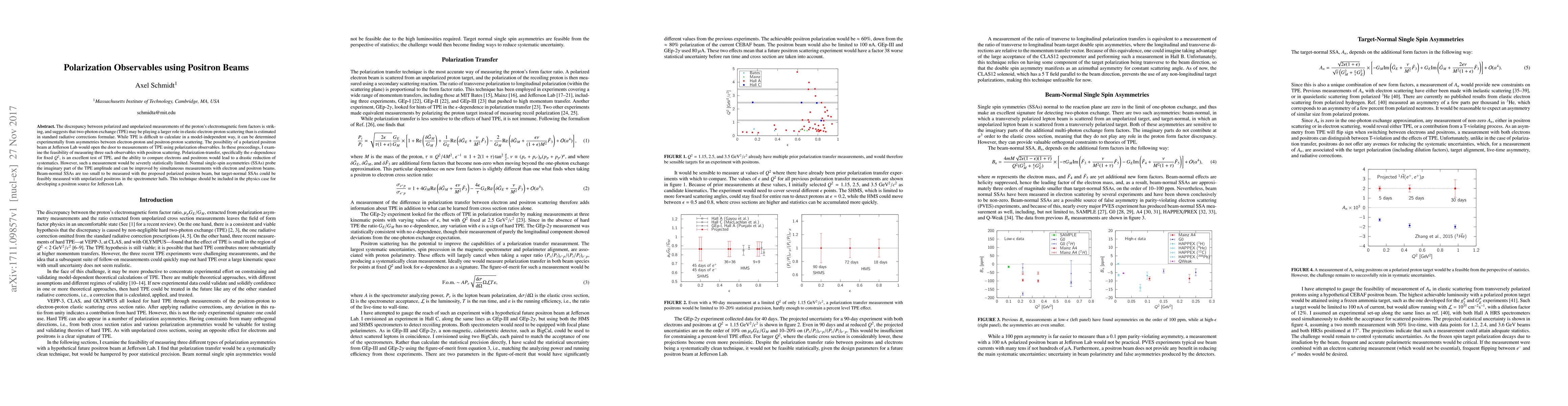 The discrepancy between polarized and unpolarized measurements of the proton's electromagnetic form factors is striking, and suggests that two-photon exchange (TPE) may be playing a larger role in elastic electron-proton scattering than is estimated in standard radiative corrections formulae. While TPE is difficult to calculate in a model-independent way, it can be determined experimentally from asymmetries between electron-proton and positron-proton scattering. The possibility of a polarized positron beam at Jefferson Lab would open the door to measurements of TPE using polarization observables. In these proceedings, I examine the feasibility of measuring three such observables with positron scattering. Polarization-transfer, specifically the $\epsilon$-dependence for fixed $Q^2$, is an excellent test of TPE, and the ability to compare electrons and positrons would lead to a drastic reduction of systematics. However, such a measurement would be severely statistically limited. Normal single-spin asymmetries (SSAs) probe the imaginary part of the TPE amplitude and can be improved by simultaneous measurements with electron and positron beams. Beam-normal SSAs are too small to be measured with the proposed polarized positron beam, but target-normal SSAs could be feasibly measured with unpolarized positrons in the spectrometer halls. This technique should be included in the physics case for developing a positron source for Jefferson Lab.