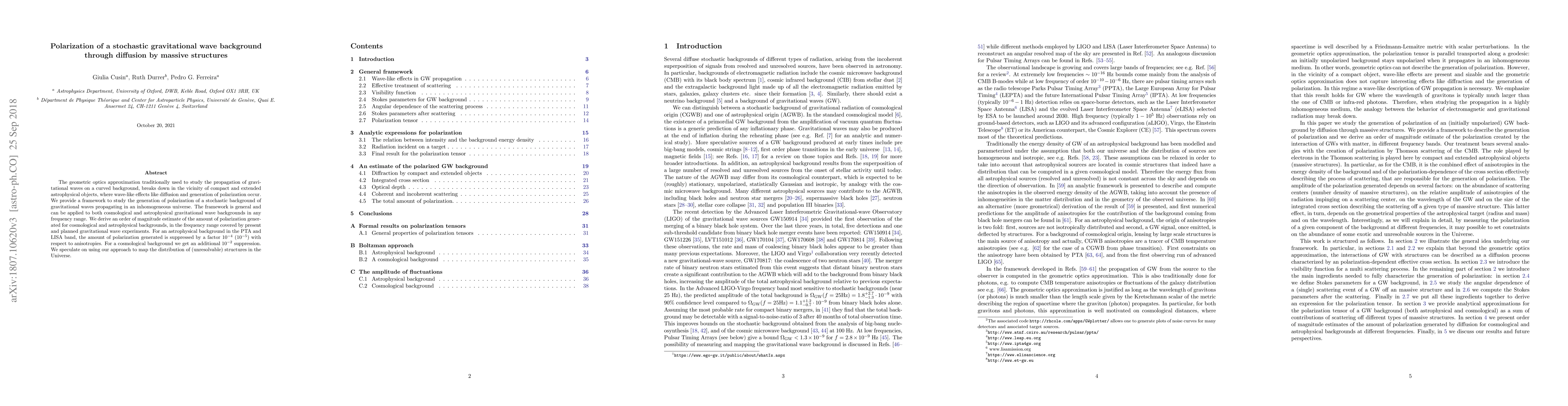 This paper develops a framework for studying the polarization of stochastic gravitational wave backgrounds due to diffusion by massive structures. It estimates the polarization generated in both cosmological and astrophysical backgrounds, finding significant suppression factors for planned gravitational wave experiments.