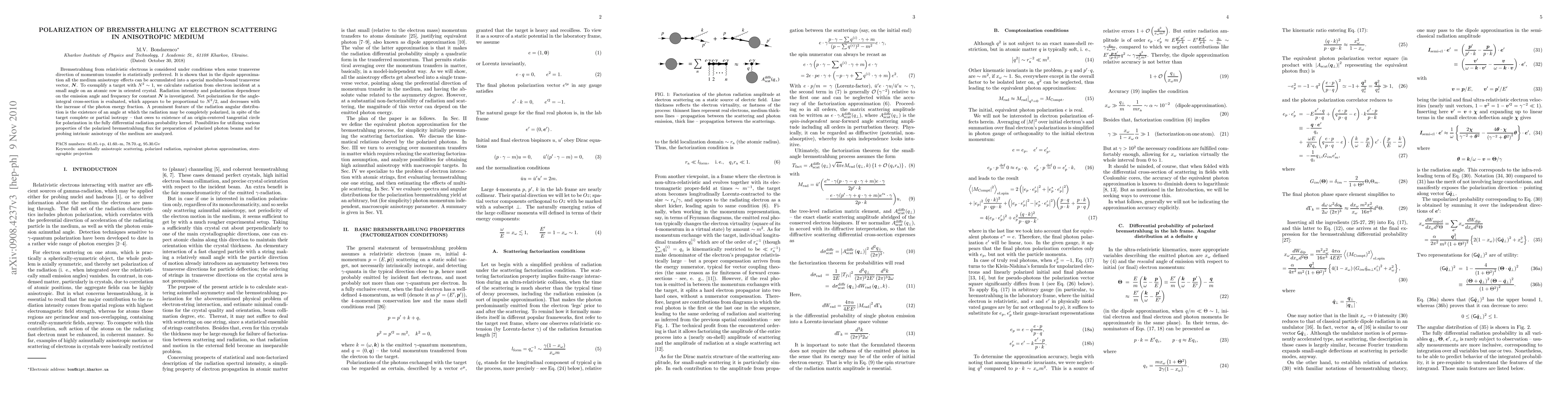 This paper investigates the polarization of bremsstrahlung radiation from relativistic electrons in an anisotropic medium, showing that anisotropy effects can be encapsulated in a vector $\bm N$. It finds that polarized radiation can emerge even from isotropic targets due to a tangential circle in the radiation probability kernel, with potential applications for generating polarized photon beams and probing medium anisotropy.