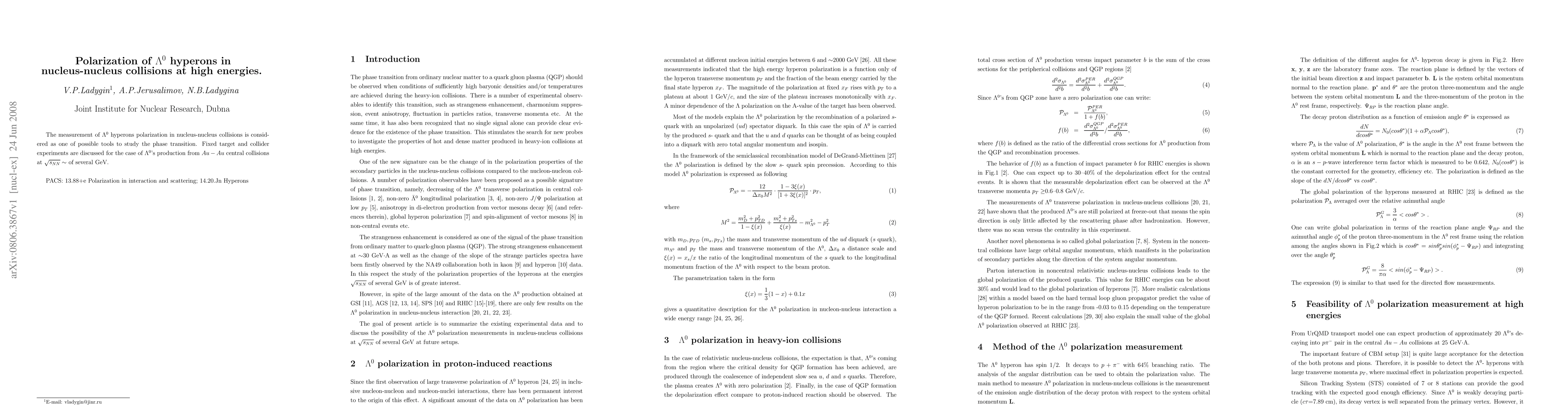 The measurement of Lambda^0 hyperons polarization in nucleus-nucleus collisions is considered as one of possible tools to study the phase transition. Fixed target and collider experiments are discussed for the case of Lambda^0's production from Au-Au central collisions at \sqrt{s_{NN}} of several GeV.