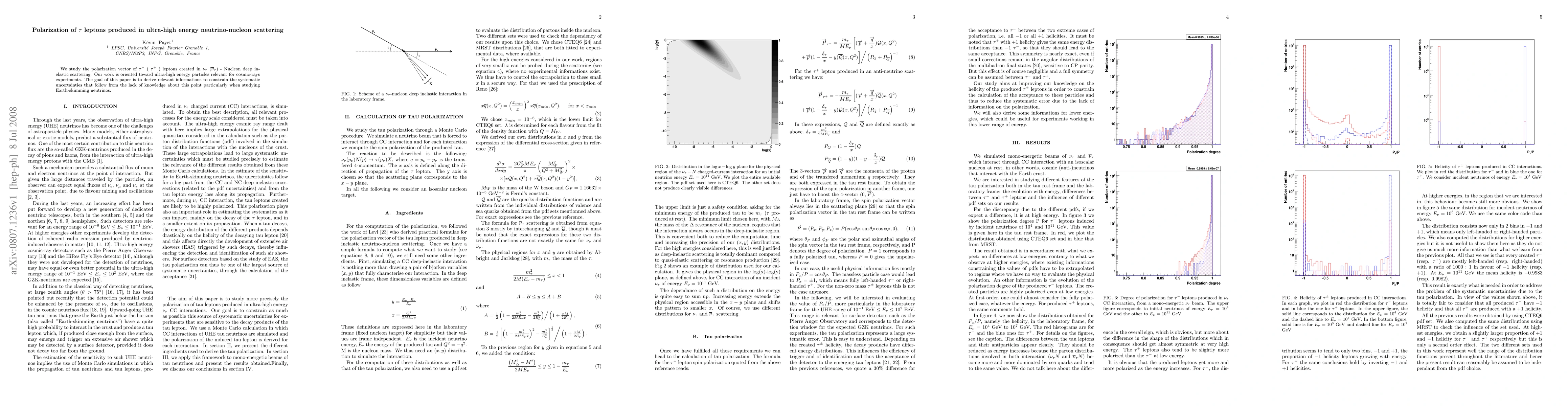 We study the polarization vector of $\tau^-$ ($\tau^+$) leptons created in $\nu_\tau$ ($\bar{\nu}_\tau$) - Nucleon deep inelastic scattering. Our work is oriented toward ultra-high energy particles relevant for cosmic-rays experiments. The goal of this paper is to derive relevant informations to constrain the systematic uncertainties that follow from the lack of knowledge about this point particularly when studying Earth-skimming neutrinos.
