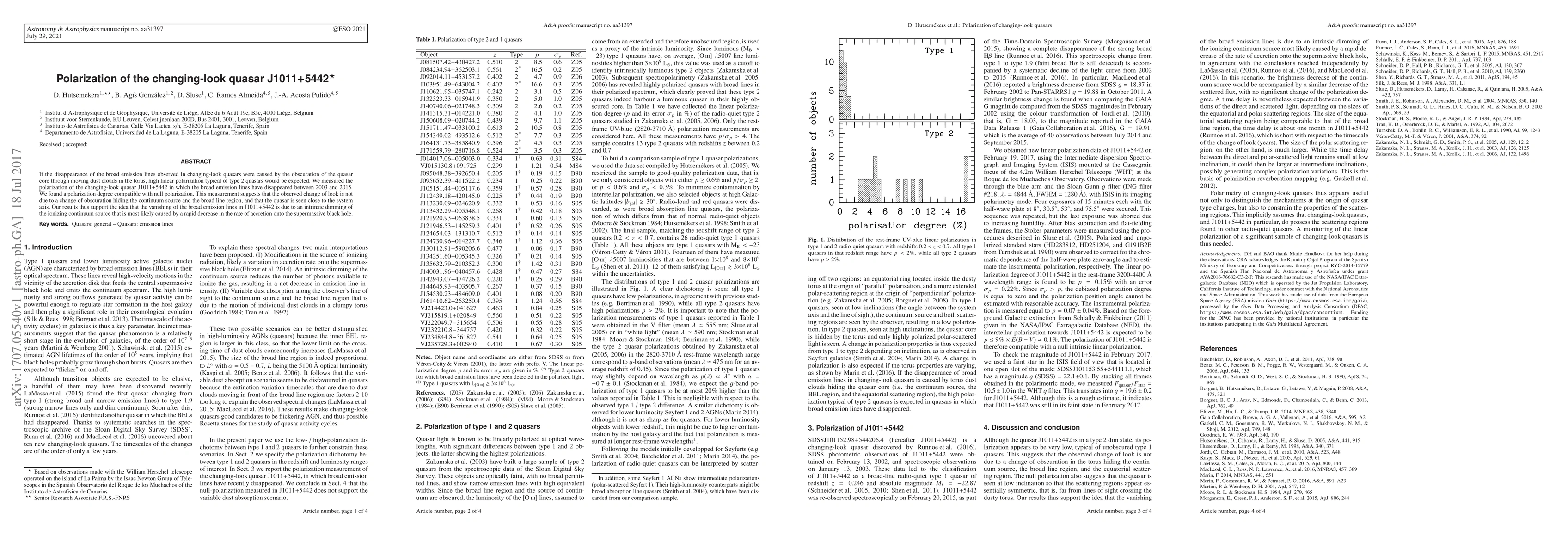 The study of the changing-look quasar J1011+5442 found no significant linear polarization, suggesting the disappearance of broad emission lines is not due to obscuration by dust clouds but rather an intrinsic dimming of the quasar's continuum source. This supports the hypothesis that the change is caused by a decrease in accretion onto the supermassive black hole.