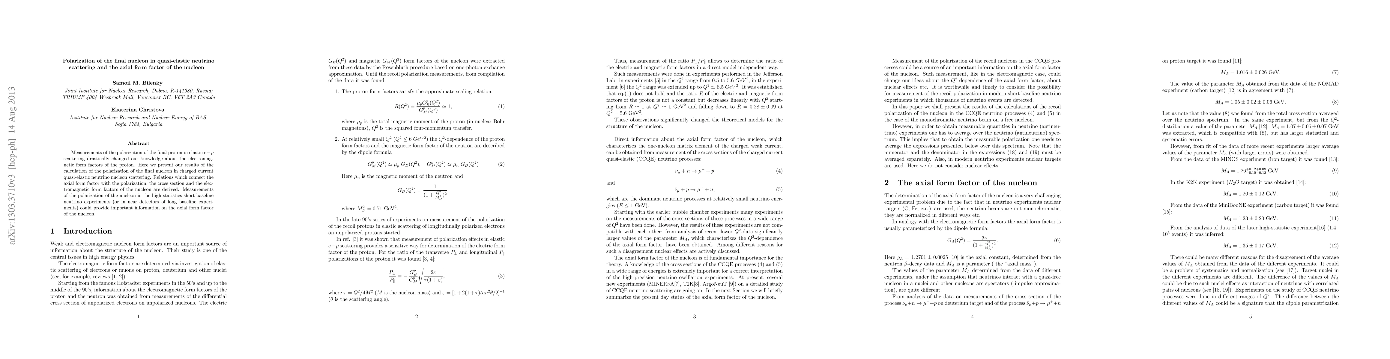 This paper calculates the polarization of the final nucleon in quasi-elastic neutrino scattering and derives relations linking the axial form factor with the polarization, the cross section, and the electromagnetic form factors of the nucleon. High-statistics measurements from neutrino experiments could yield crucial insights into the axial form factor.