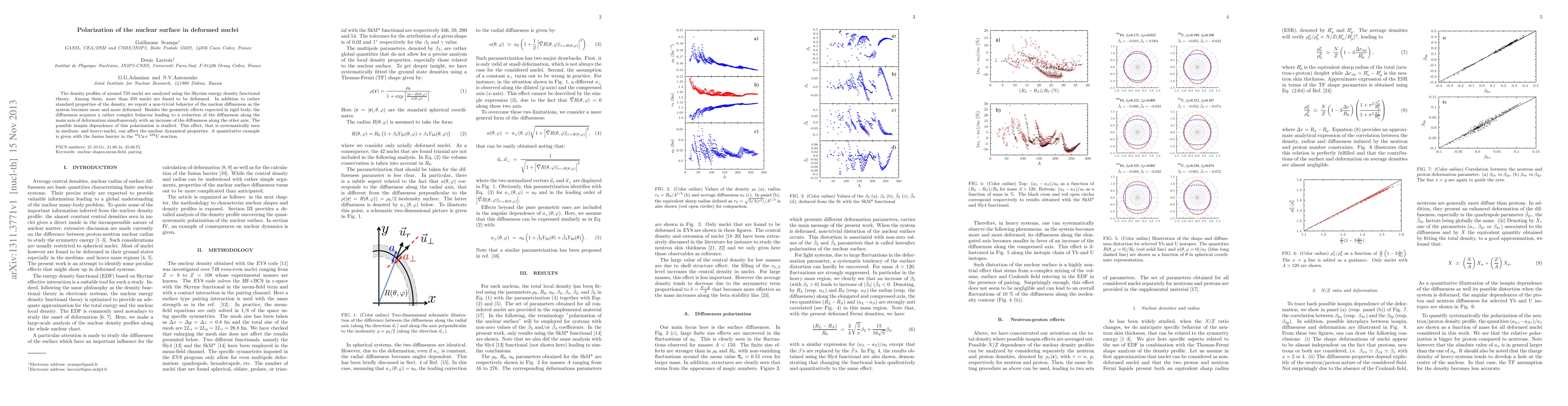 The density profiles of around 750 nuclei are analyzed using the Skyrme energy density functional theory. Among them, more than 350 nuclei are found to be deformed. In addition to rather standard properties of the density, we report a non-trivial behavior of the nuclear diffuseness as the system becomes more and more deformed. Besides the geometric effects expected in rigid body, the diffuseness acquires a rather complex behavior leading to a reduction of the diffuseness along the main axis of deformation simultaneously with an increase of the diffuseness along the other axis. The possible isospin dependence of this polarization is studied. This effect, that is systematically seen in medium- and heavy-nuclei, can affect the nuclear dynamical properties. A quantitative example is given with the fusion barrier in the $^{40}$Ca+ $^{238}$U reaction.