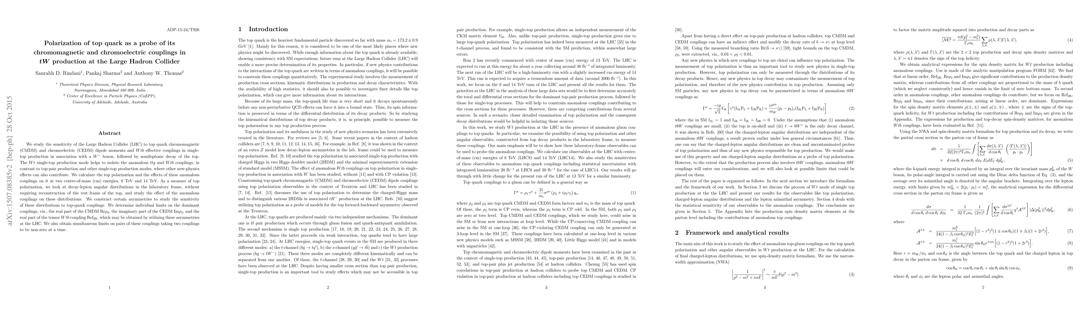 This paper investigates the polarization of top quarks in $tW$ production at the LHC to probe their chromomagnetic and chromoelectric dipole moments, as well as $Wtb$ effective couplings. It calculates top polarization effects and decay-lepton angular distributions to determine individual and simultaneous limits on these anomalous couplings, providing a sensitive probe for new physics beyond the Standard Model.