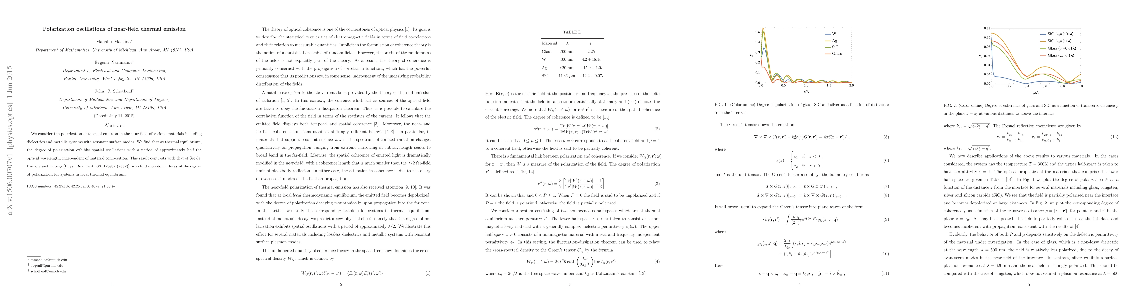 Researchers found that thermal emission from materials in near-field conditions exhibits polarization oscillations with a period of approximately half the optical wavelength, contrasting with previous findings.