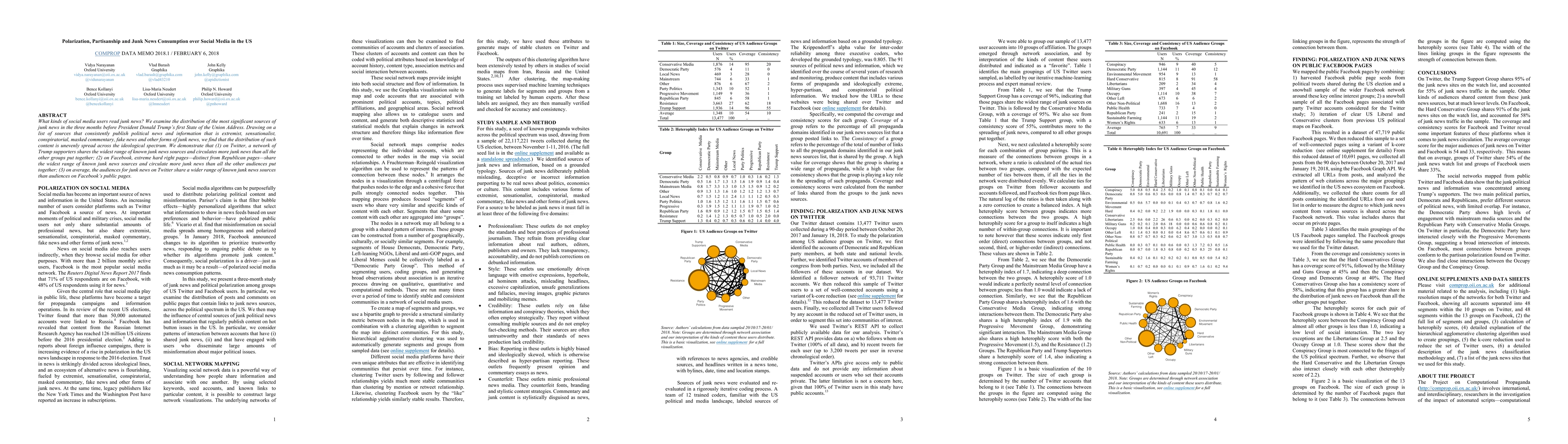 This study investigates the consumption of junk news on social media platforms in the US, finding that Trump supporters on Twitter and extreme right pages on Facebook circulate the most sensationalist and fake news. It highlights the uneven distribution of junk news across ideological groups.