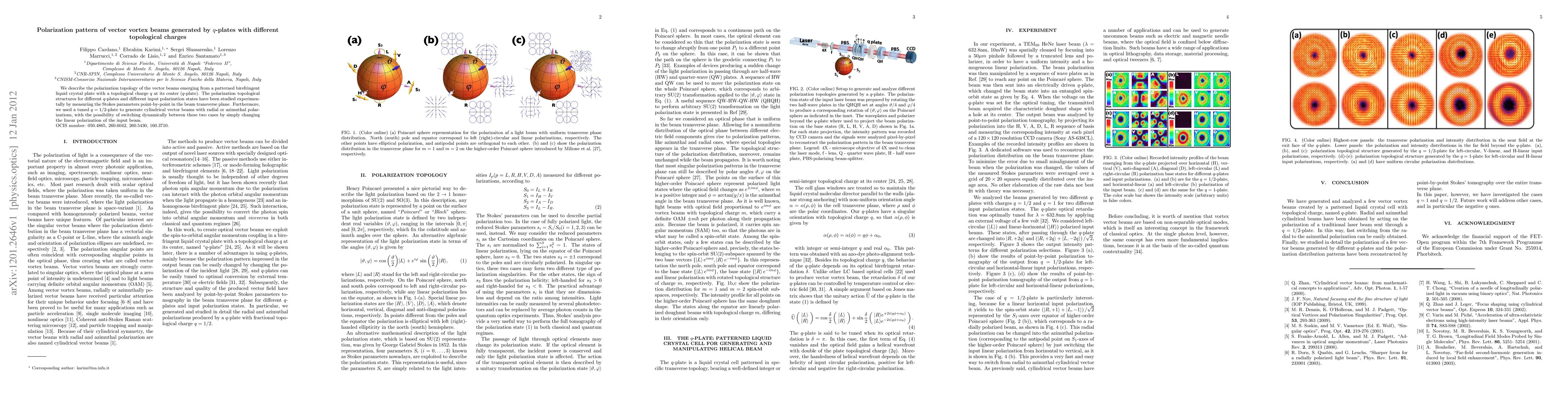 We describe the polarization topology of the vector beams emerging from a patterned birefringent liquid crystal plate with a topological charge $q$ at its center ($q$-plate). The polarization topological structures for different $q$-plates and different input polarization states have been studied experimentally by measuring the Stokes parameters point-by-point in the beam transverse plane. Furthermore, we used a tuned $q=1/2$-plate to generate cylindrical vector beams with radial or azimuthal polarizations, with the possibility of switching dynamically between these two cases by simply changing the linear polarization of the input beam.