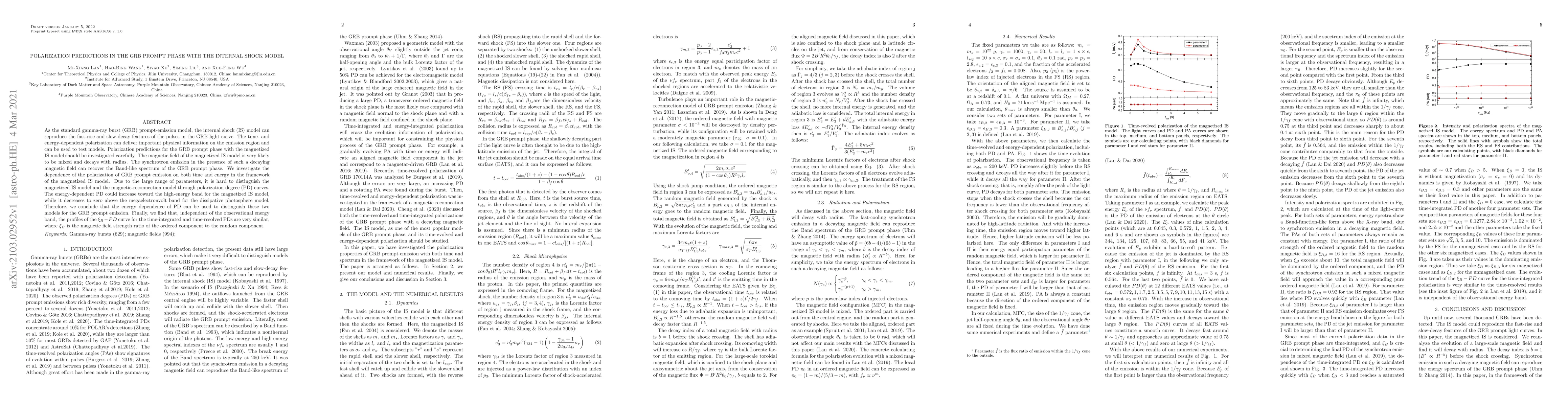 As the standard gamma-ray burst (GRB) prompt-emission model, the internal shock (IS) model can reproduce the fast-rise and slow-decay features of the pulses in the GRB light curve. The time- and energy-dependent polarization can deliver important physical information on the emission region and can be used to test models. Polarization predictions for the GRB prompt phase with the magnetized IS model should be investigated carefully. The magnetic field of the magnetized IS model is very likely to be mixed and decays with radius. The synchrotron emission in the presence of such a decaying magnetic field can recover the Band-like spectrum of the GRB prompt phase. We investigate the dependence of the polarization of GRB prompt emission on both time and energy in the framework of the magnetized IS model. Due to the large range of parameters, it is hard to distinguish the magnetized IS model and the magnetic-reconnection model through polarization degree (PD) curves. The energy-dependent PD could increase toward the high-energy band for the magnetized IS model, while it decreases to zero above the megaelectronvolt band for the dissipative photosphere model. Therefore, we conclude that the energy dependence of PD can be used to distinguish these two models for the GRB prompt emission. Finally, we find that, independent of the observational energy band, the profiles of the $\xi_B-PD$ curve for the time-integrated and time-resolved PDs are very similar, where $\xi_B$ is the magnetic field strength ratio of the ordered component to the random component.