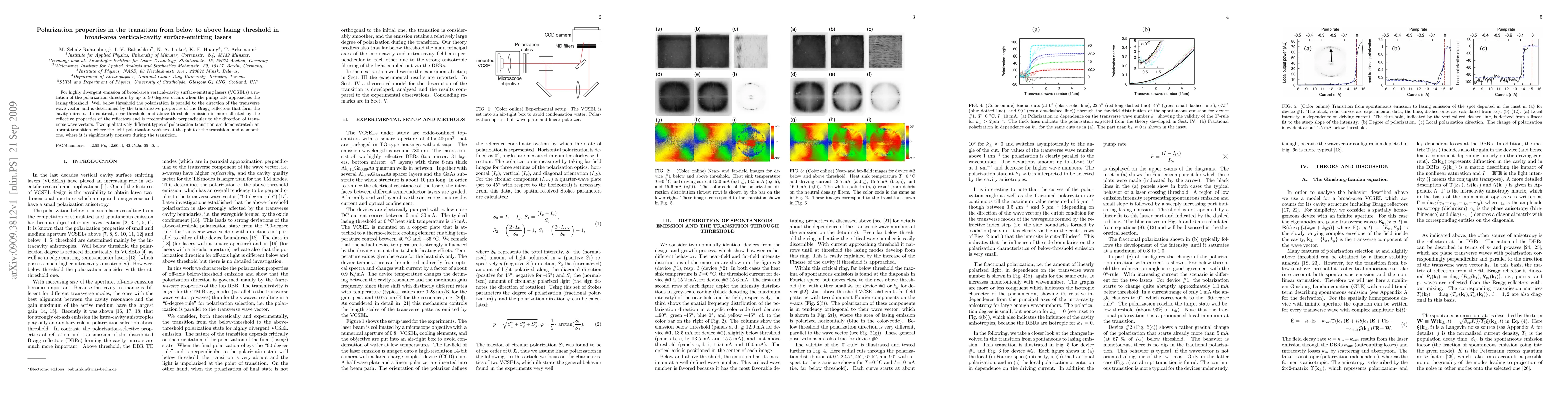 This paper investigates the polarization behavior in broad-area vertical-cavity surface-emitting lasers (VCSELs) as the pump rate approaches and exceeds the lasing threshold, revealing a 90-degree rotation in polarization direction. Below threshold, polarization aligns with the transverse wave vector, while near and above threshold, it becomes predominantly perpendicular, influenced by reflector properties. Two distinct polarization transition types are identified: abrupt and smooth transitions.