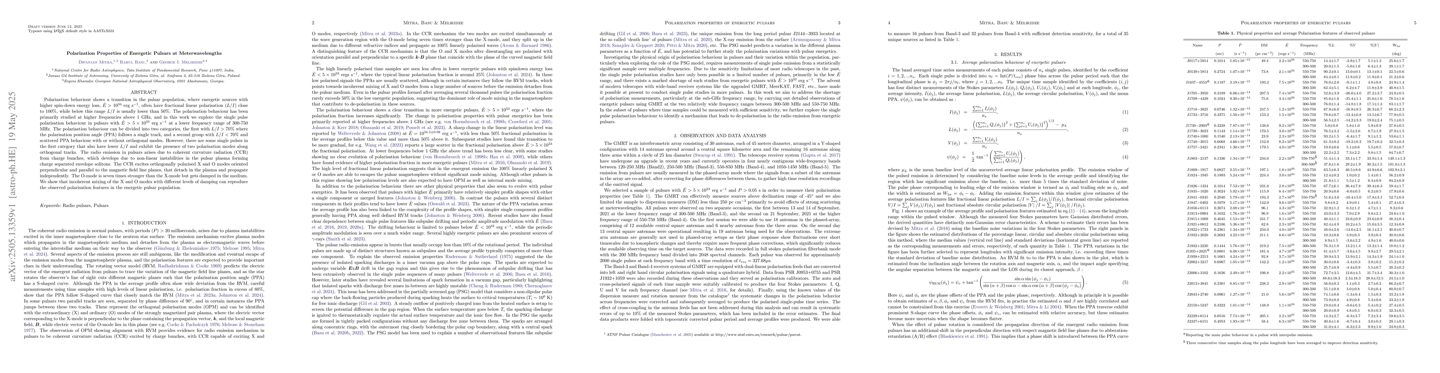 Energetic pulsars with high spin-down energy loss exhibit 100% fractional linear polarization at lower frequencies than previously studied, and this behavior can be explained by incoherent mixing of two polarized modes.