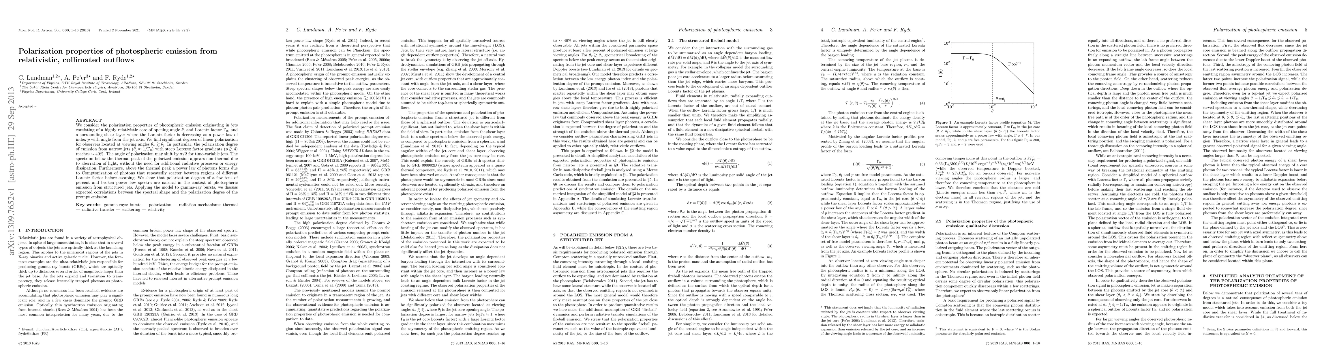 We consider the polarization properties of photospheric emission originating in jets consisting of a highly relativistic core of opening angle theta_j and Lorentz factor Gamma_0, and a surrounding shear layer where the Lorentz factor is decreasing as a power law of index p with angle from the jet axis. We find significant degrees of linear polarization for observers located at viewing angles theta_v \gtrsim theta_j. In particular, the polarization degree of emission from narrow jets (theta_j \approx 1/Gamma_0) with steep Lorentz factor gradients (p \gtrsim 4) reaches \sim 40%. The angle of polarization may shift by pi/2 for time-variable jets. The spectrum below the thermal peak of the polarized emission appears non-thermal due to aberration of light, without the need for additional radiative processes or energy dissipation. Furthermore, above the thermal peak a power law of photons forms due to Comptonization of photons that repeatedly scatter between regions of different Lorentz factor before escaping. We show that polarization degrees of a few tens of percent and broken power law spectra are natural in the context of photospheric emission from structured jets. Applying the model to gamma-ray bursts, we discuss expected correlations between the spectral shape and the polarization degree of the prompt emission.